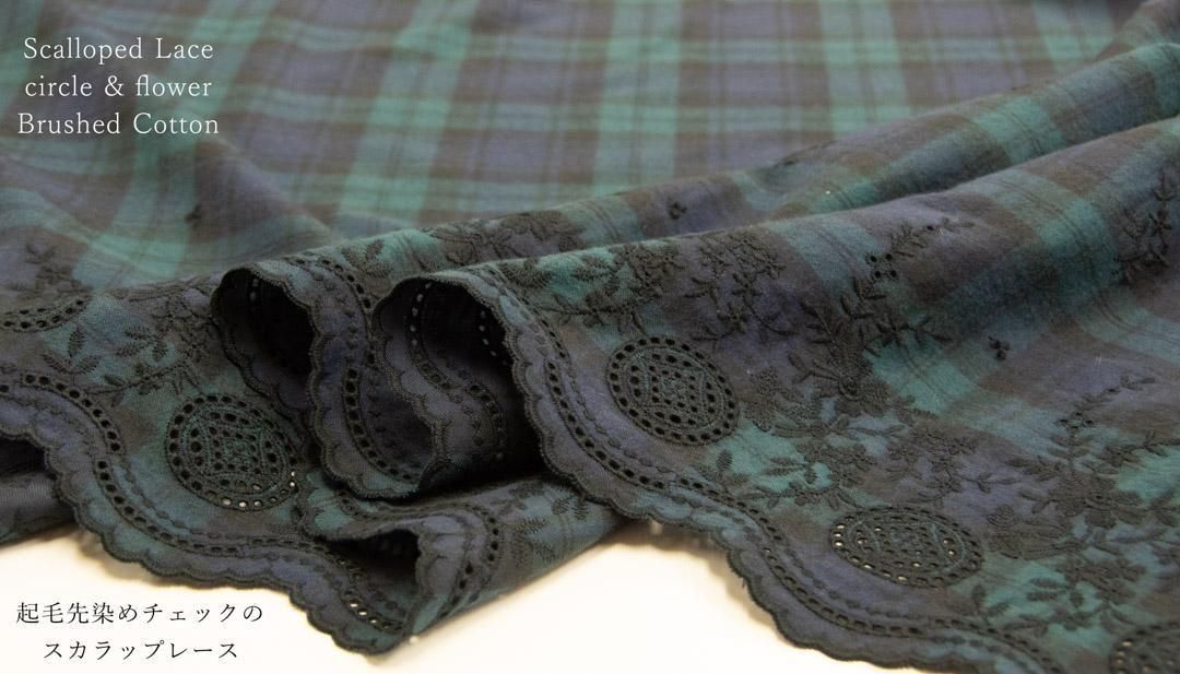 [ Today's Time Sale ][数量限定・再生産]先染め起毛チェックのサークル&フラワー |0009-85 ブラックウォッチ