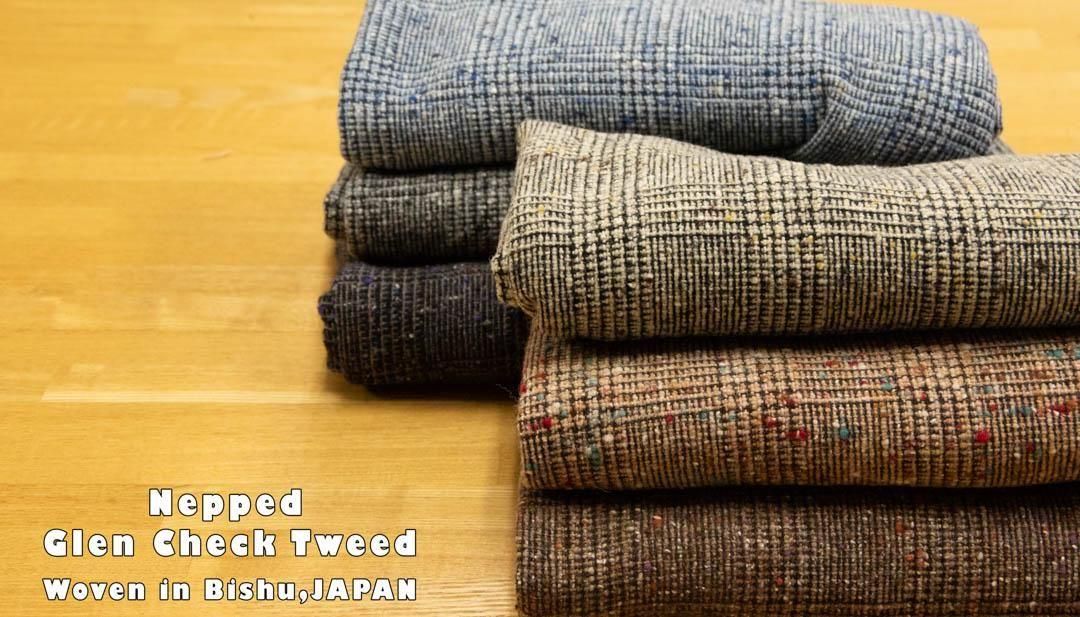尾州で織ったネップグレンチェックツイード|ウール生地|140cm巾|25208-6 ブラック
