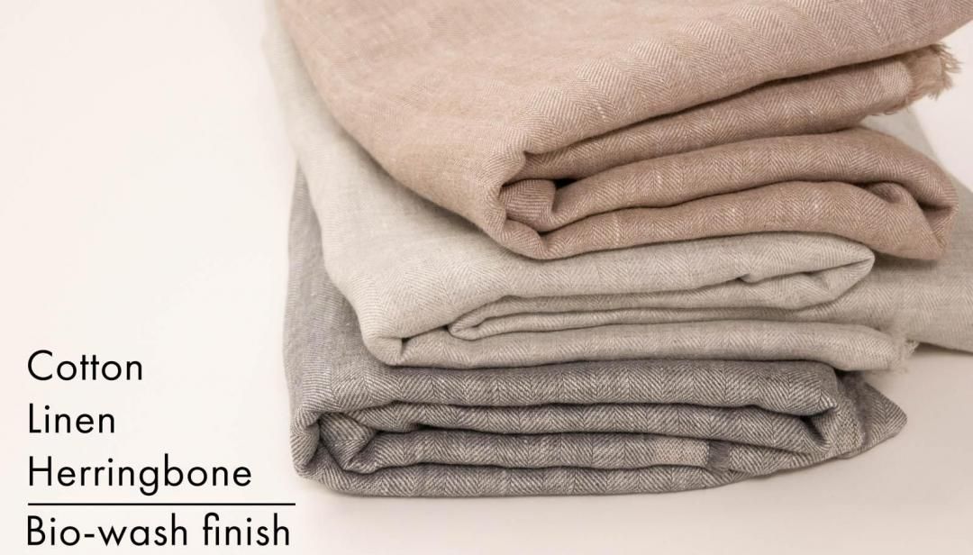 [ sale ]Linen Blend Herringbone|ふんわりバイオウォッシュフィニッシュ|26001-2 エクリュ
