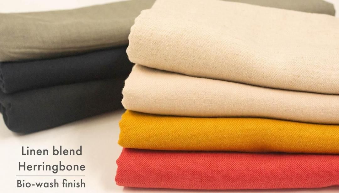[ sale ]Linen Blend Herringbone|ふんわりバイオウォッシュフィニッシュ|26001-5 ライトオリーブ