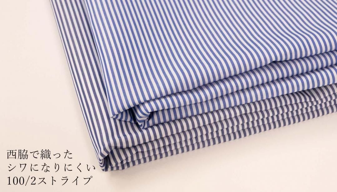 [キジキジスピンオフストア][ 3mcut ]西脇で織ったシワになりにくい100/2ストライプ|KSS-3m-25278-1 ブルー