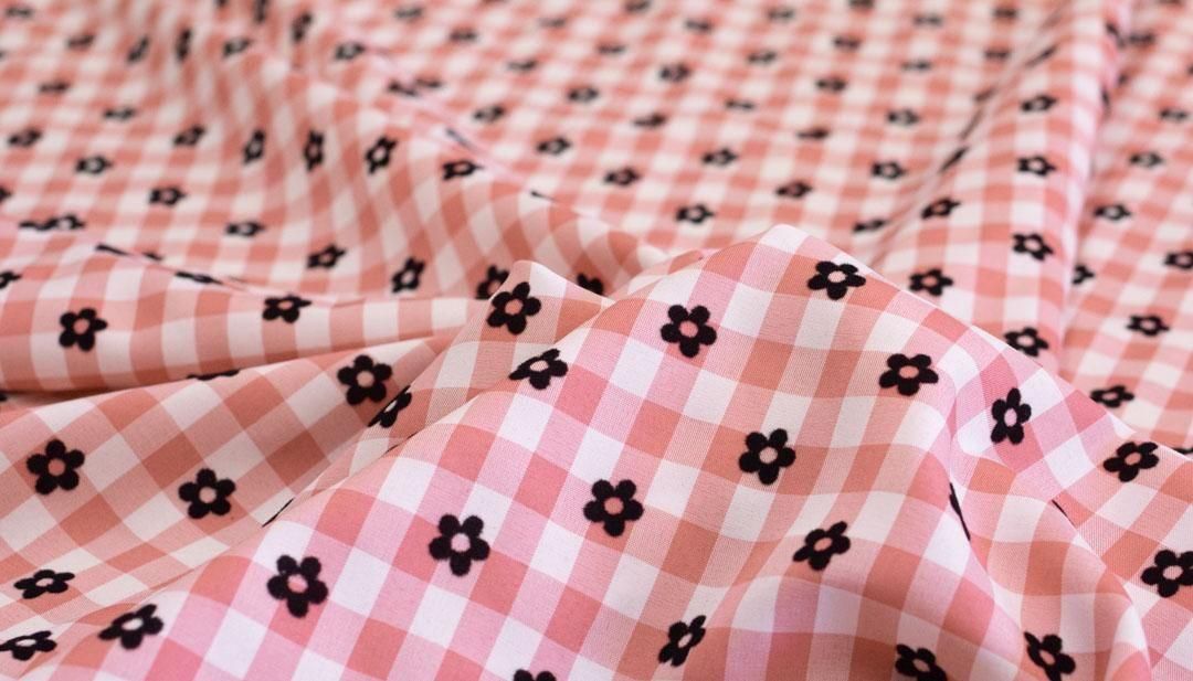 【ハギレ】【長さ 100cm】 Bebe Bloom Check|베베 블룸 체크|韓国風デザイン|680円個
