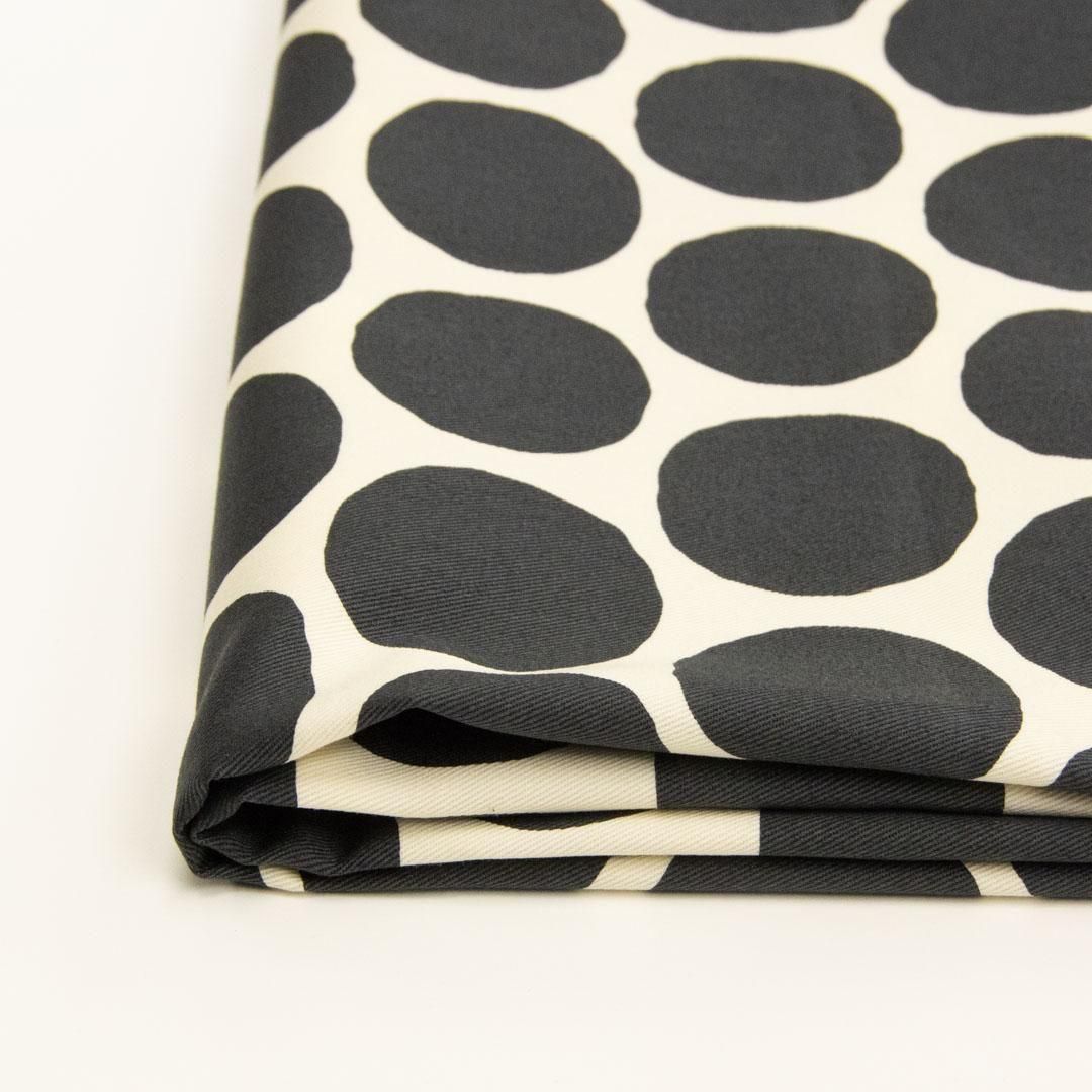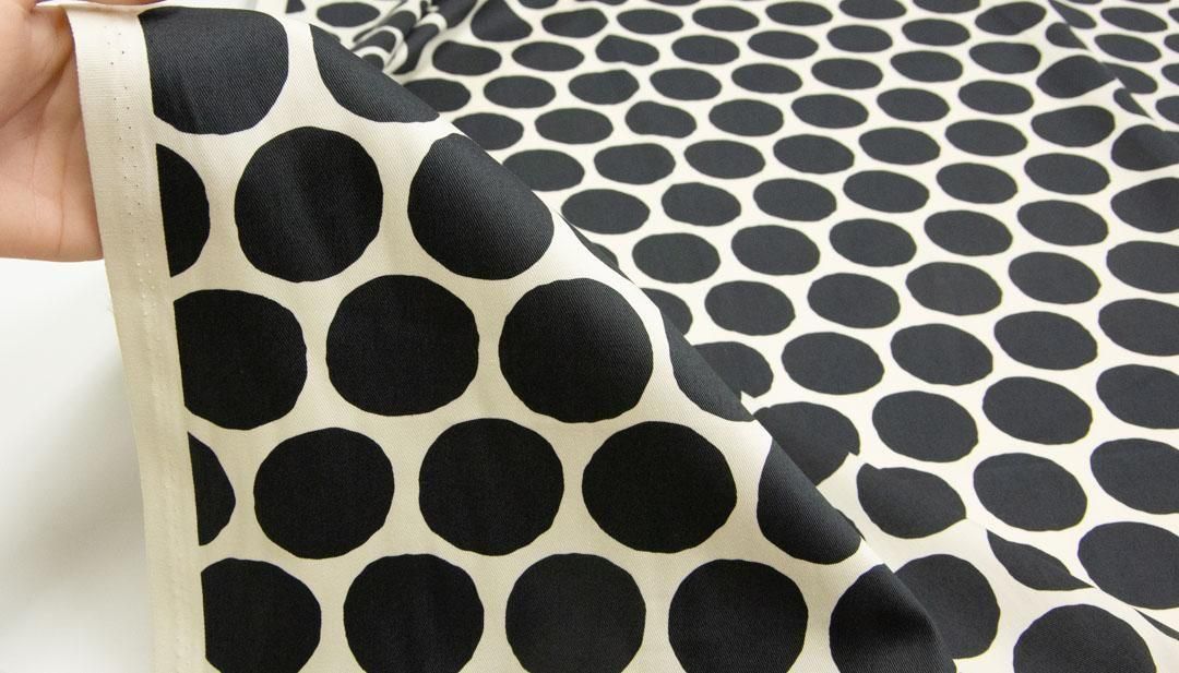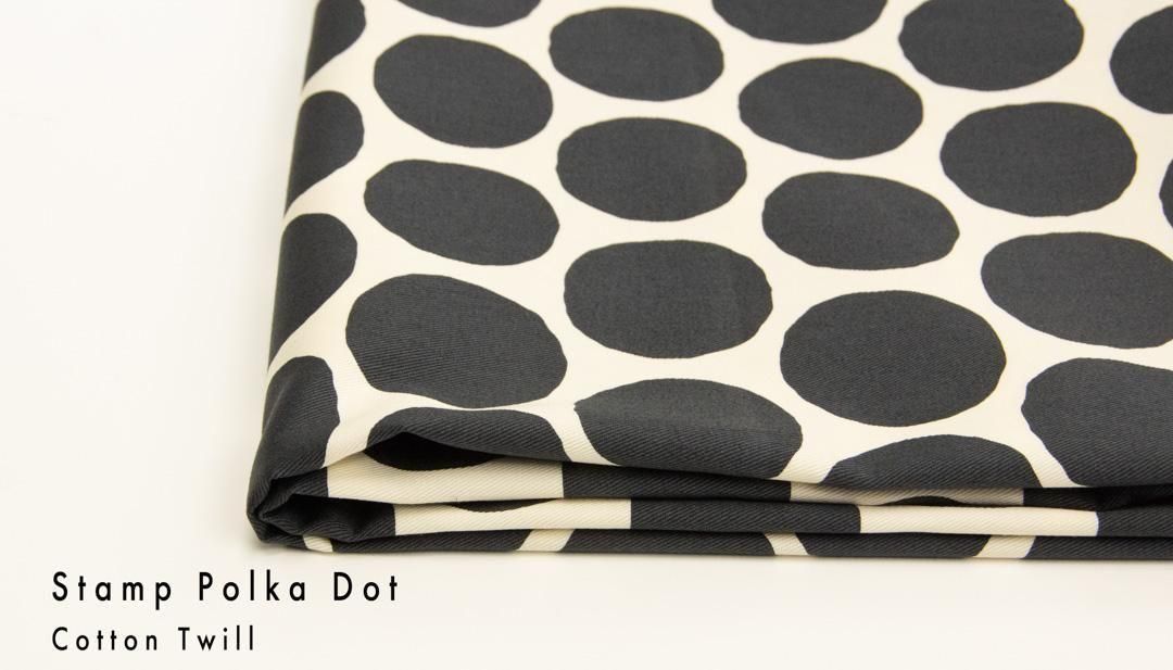 やや大きめのドットを、スタンプで押したようなデザインのコットンツイル生地