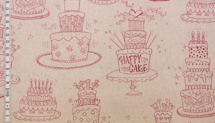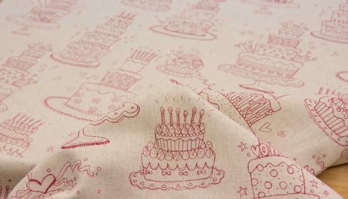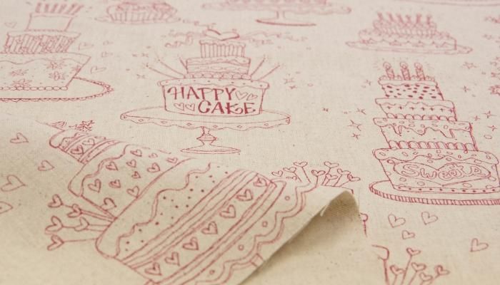 コットンリネンキャンバス生地にいろいろなケーキのデザインをプリントしました。