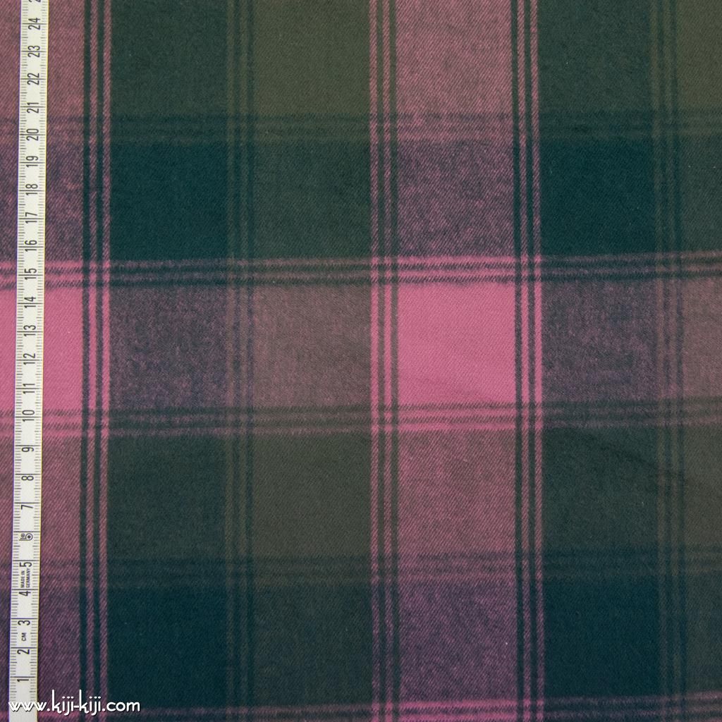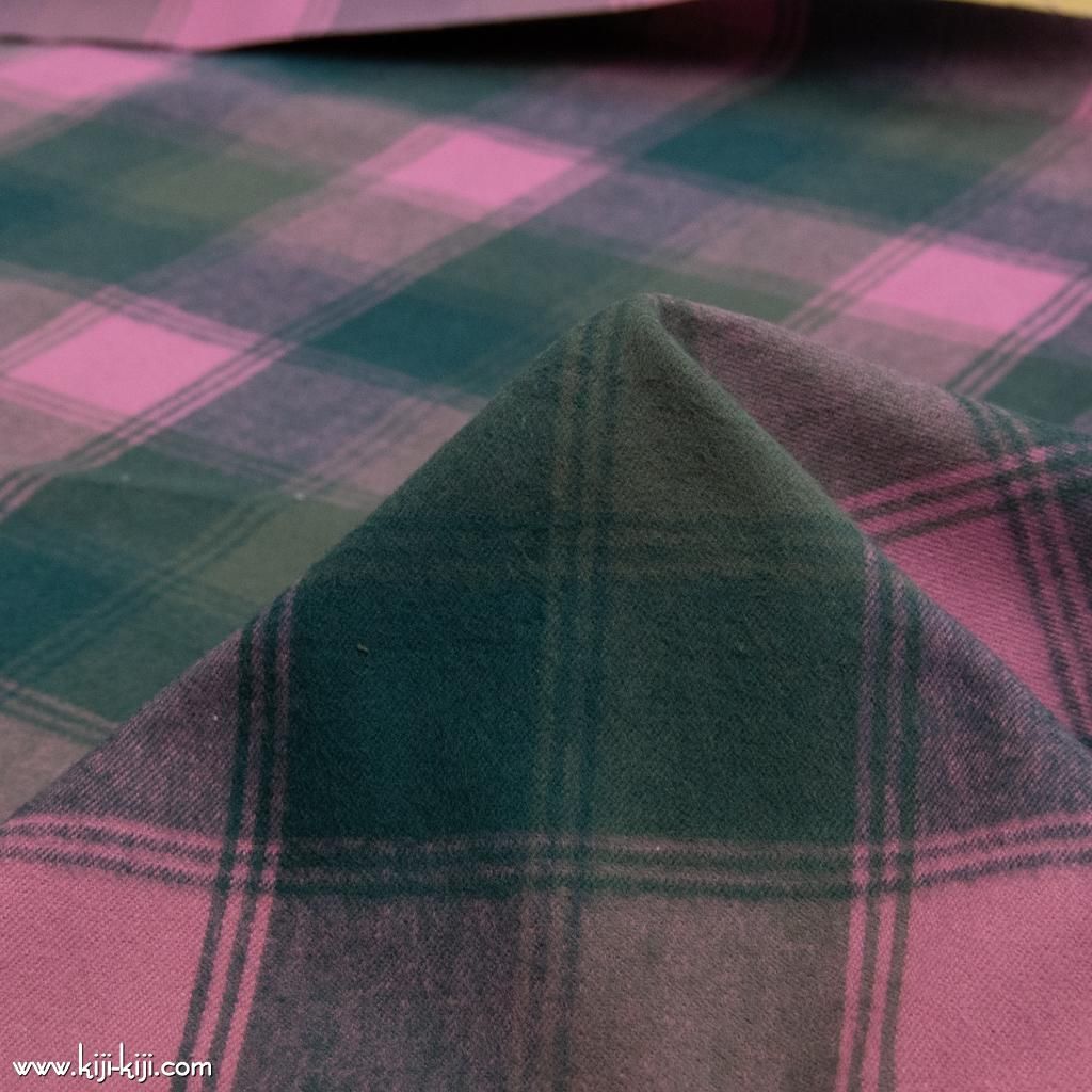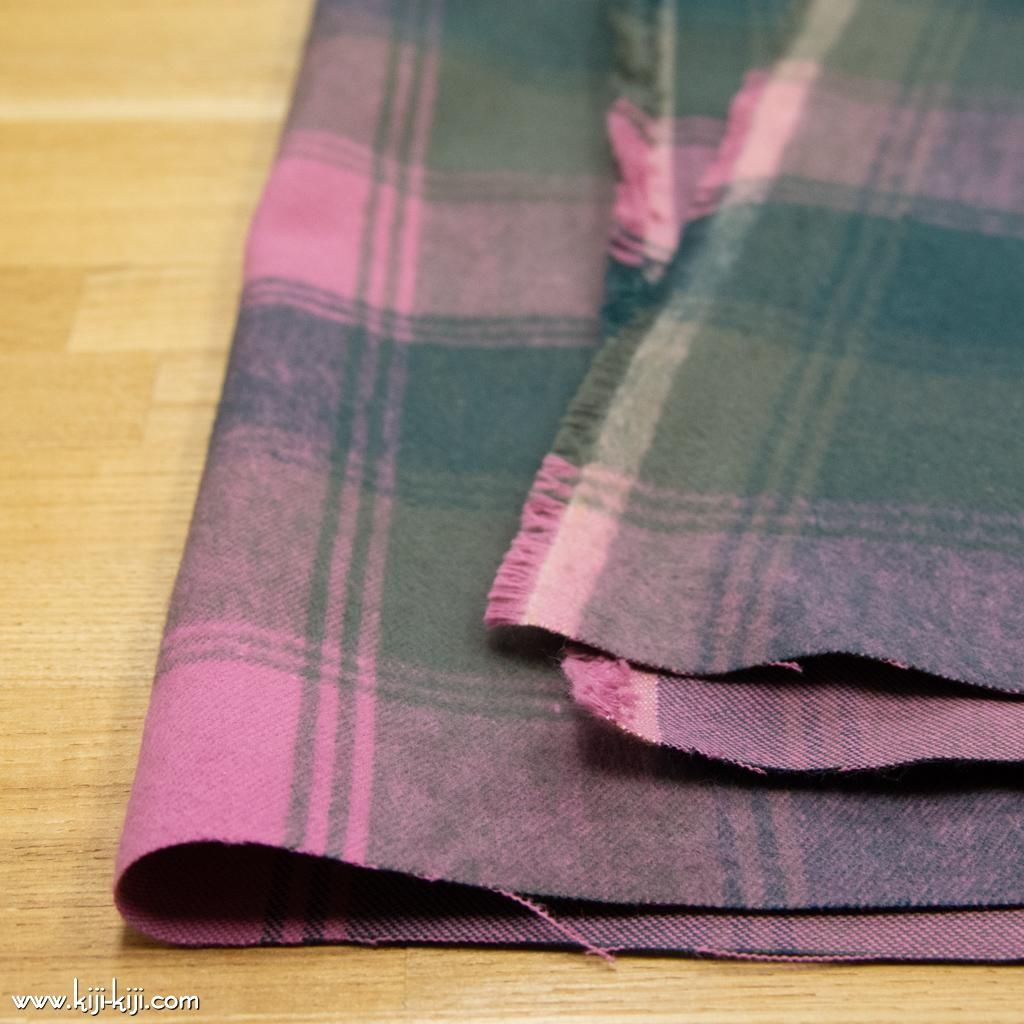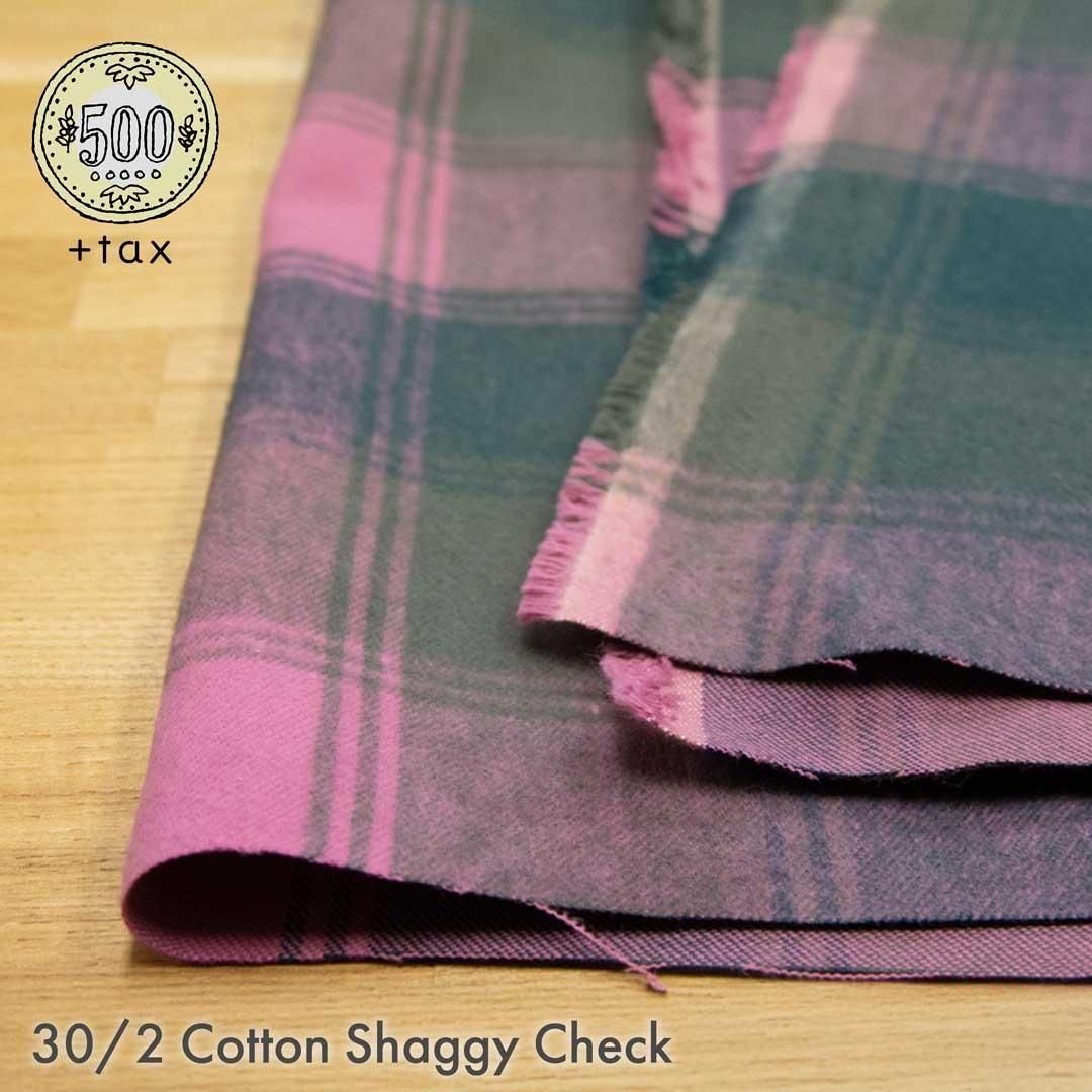 30番手双糸で織った綾織りブロックオンブレーチェック生地にやわらかなシャギー起毛をほどこしました。