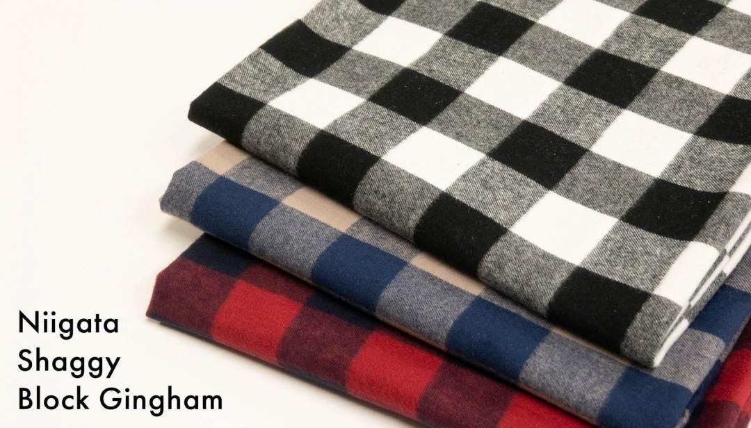 生地の産地・新潟で、丁寧に起毛仕上げを施したブロックギンガムシャギー生地