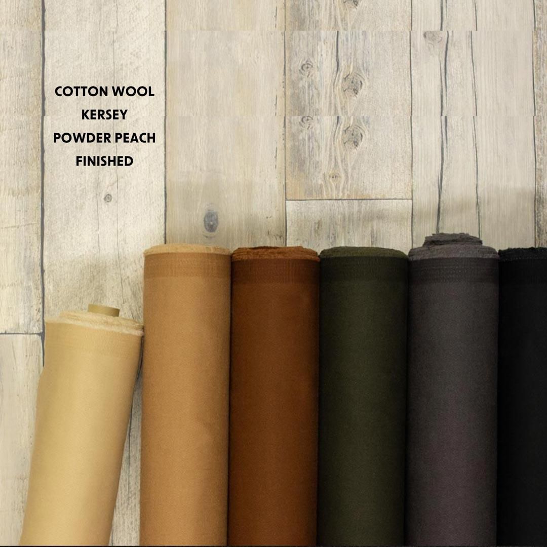表面にパウダーピーチ起毛加工をほどこし、やわらかな風合いのカルゼ生地です。