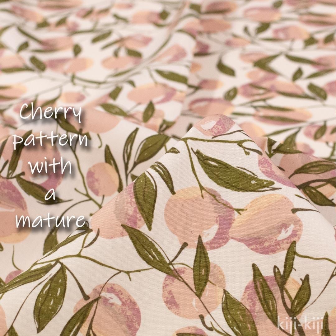 落ちついたチェリーのデザインはお洋服から小物まではばひろく使えそうです。