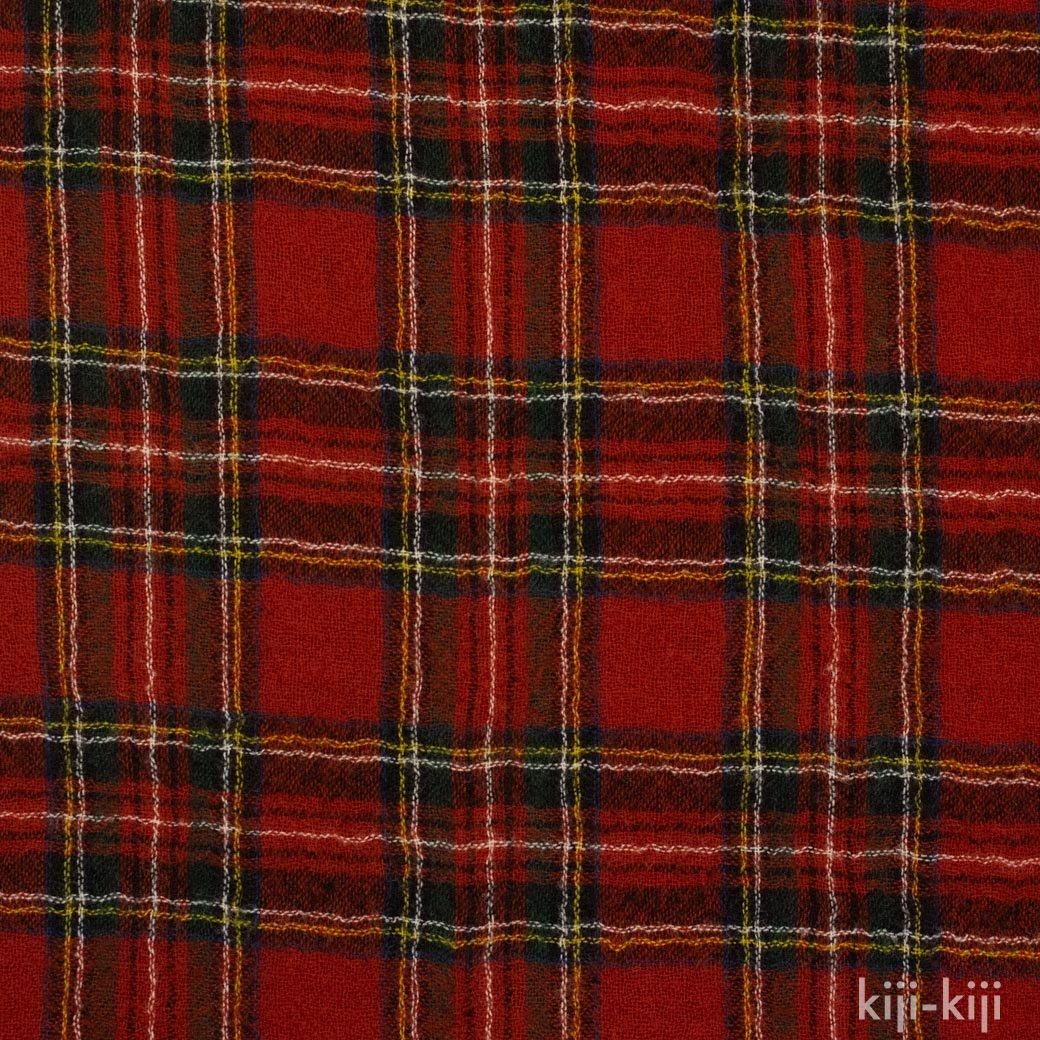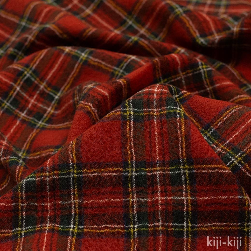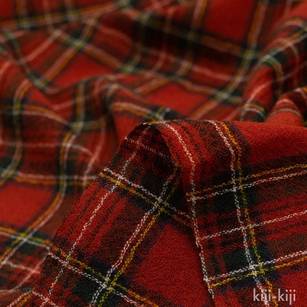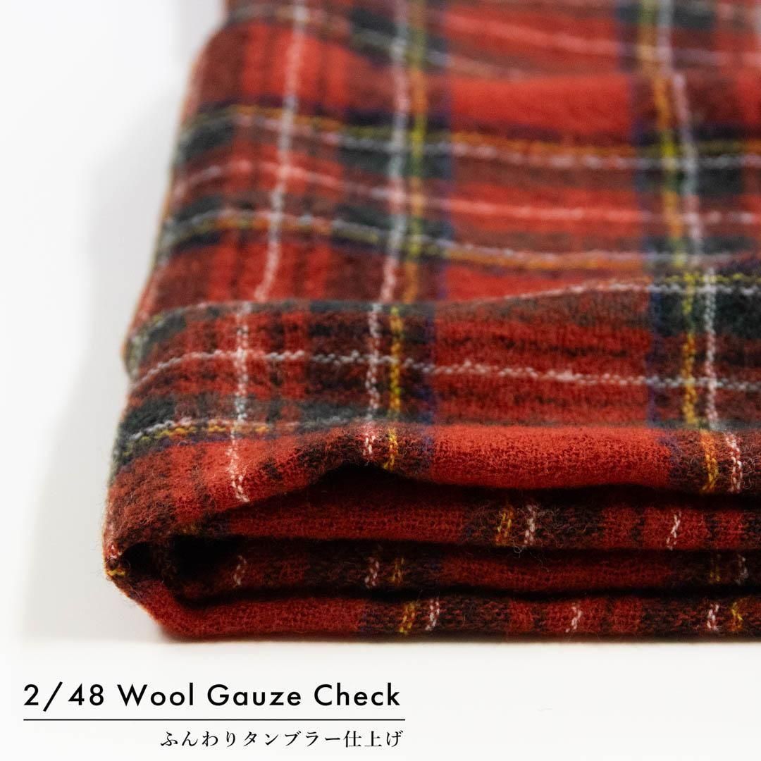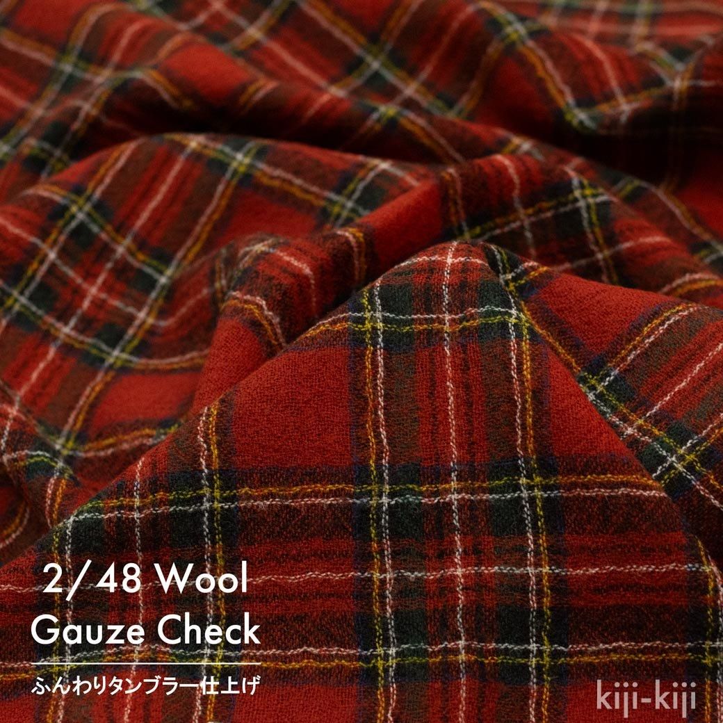 ウール100%の梳毛の48番手双糸を使用して織ったウールガーゼチェックです。