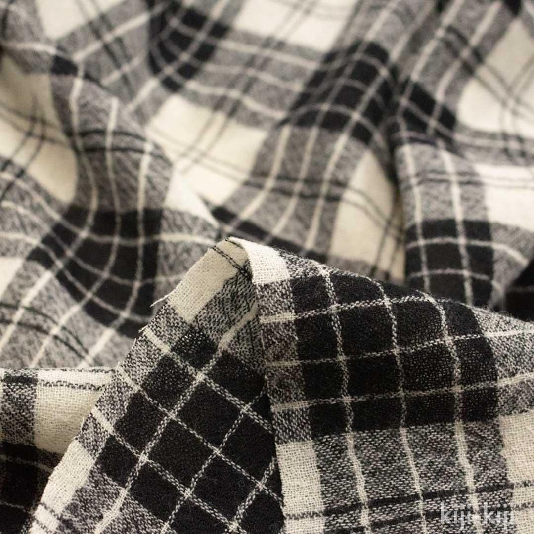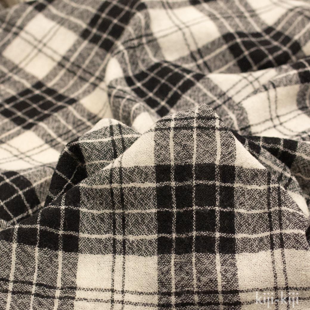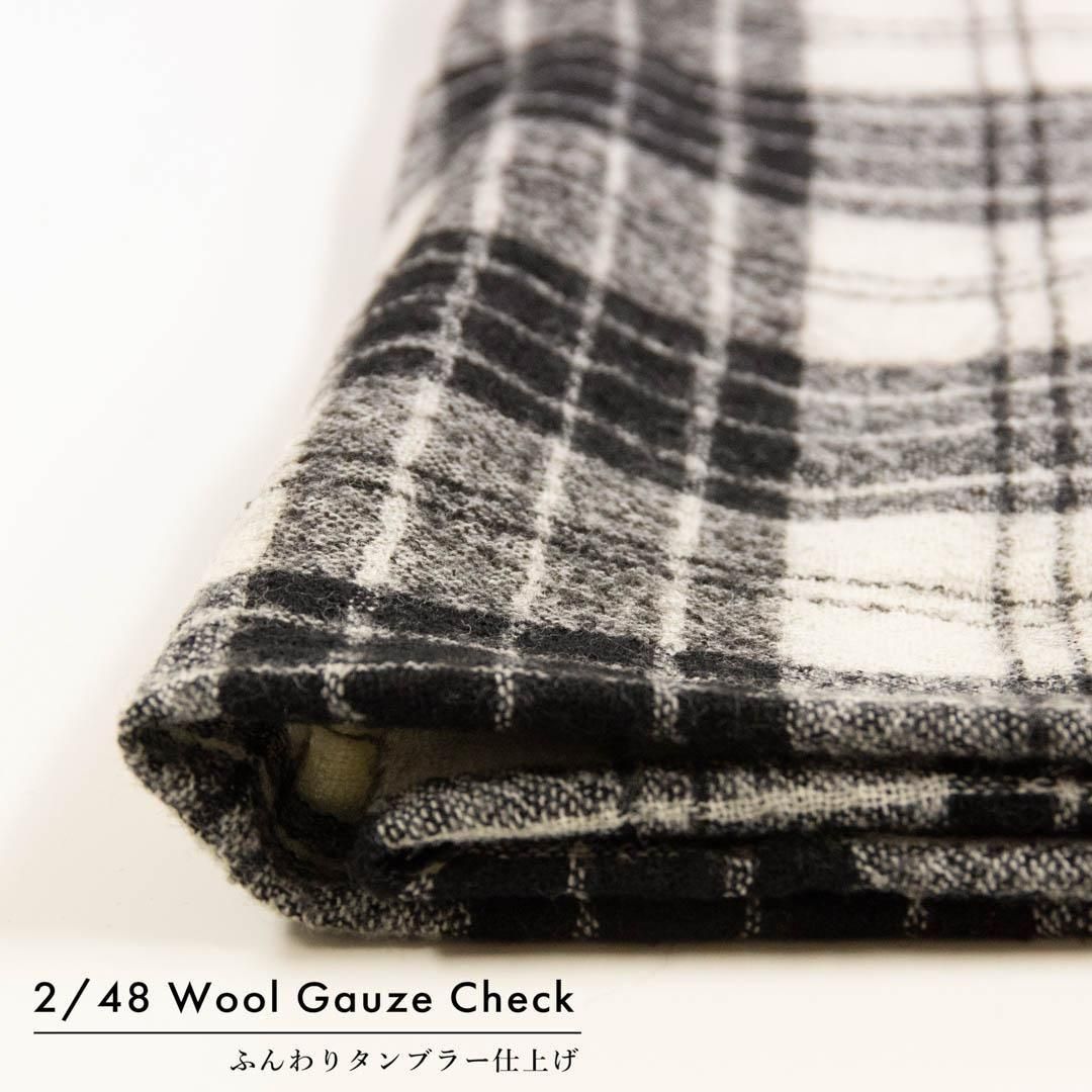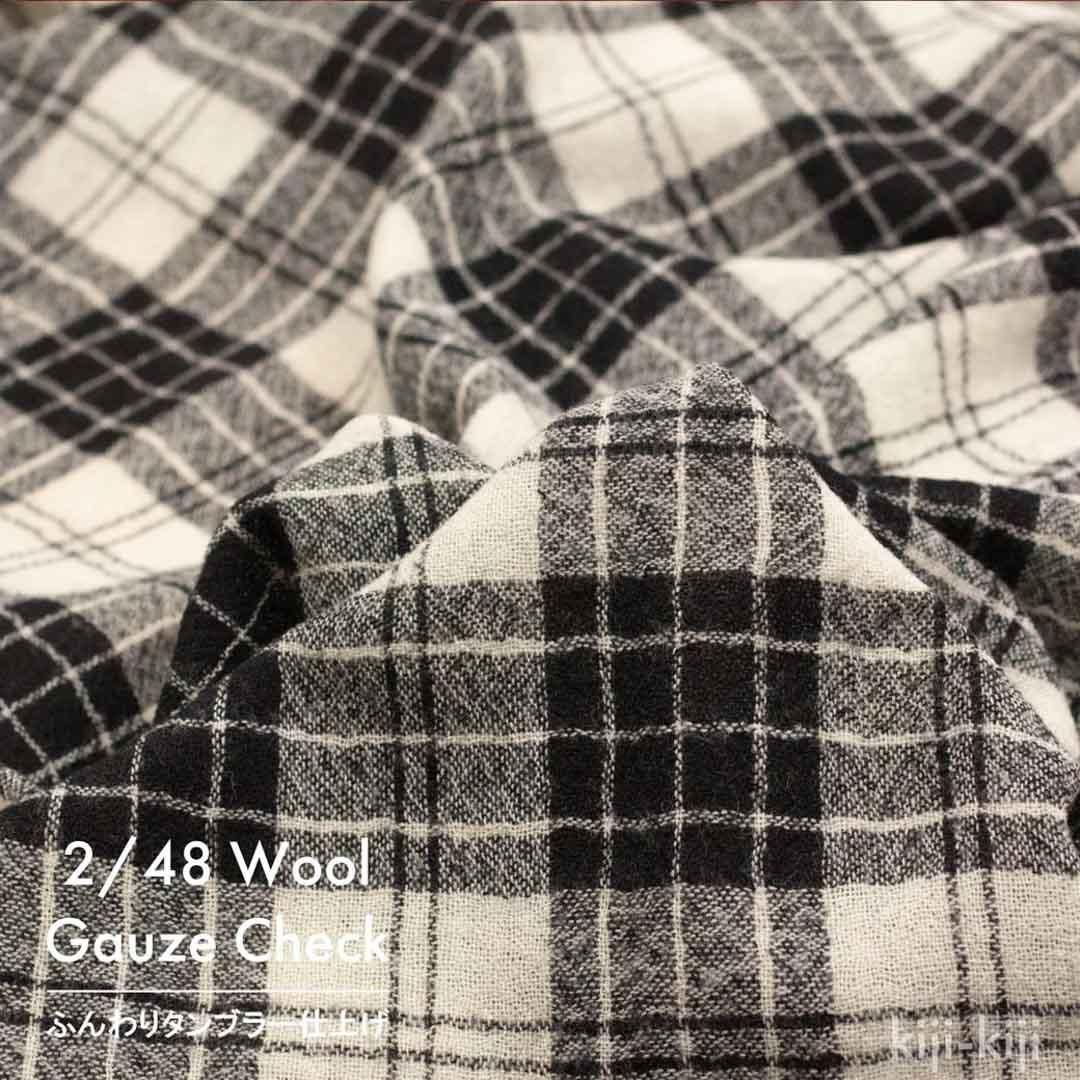 ウール100%の梳毛の48番手双糸を使用して織ったウールガーゼチェックです。