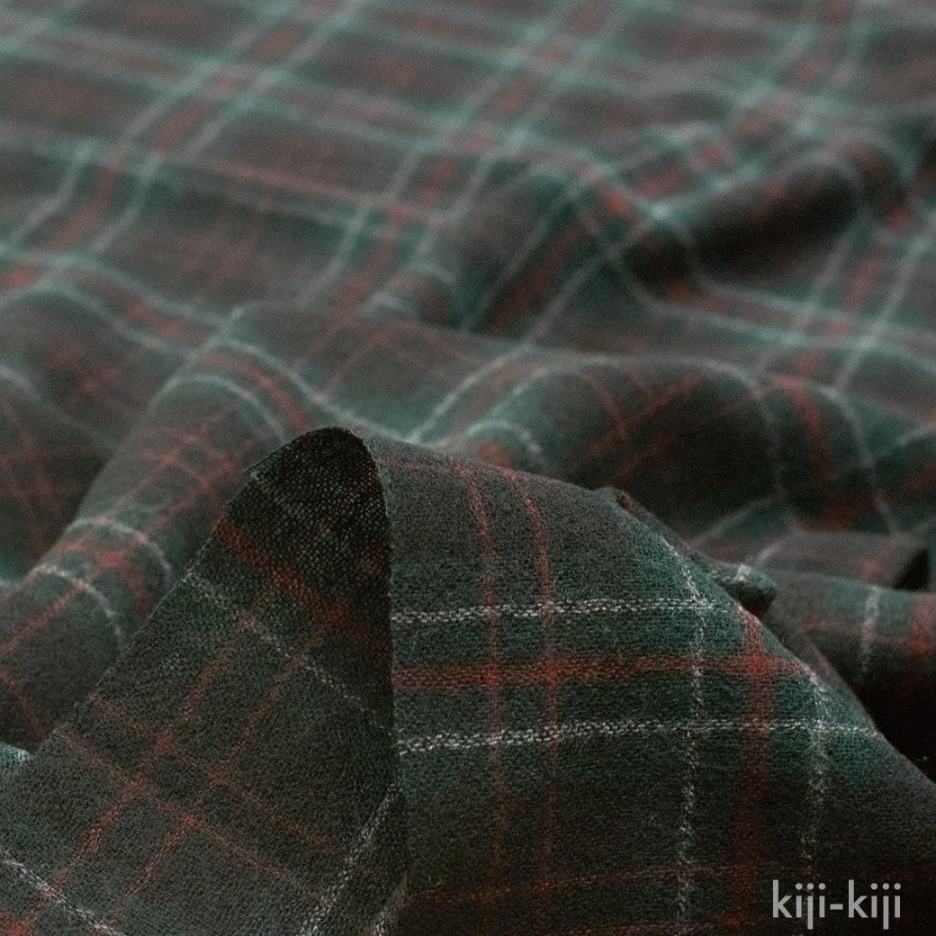 [ ウール ] Wool Gauze Check|2/48ウール|タンブラーワッシャー|deep green|9231-7