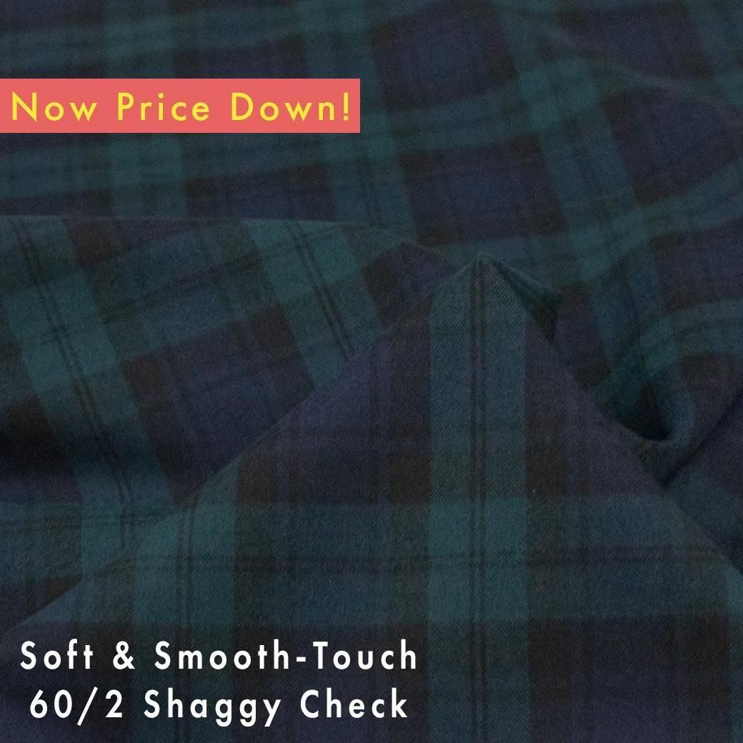 [ 起毛 ]なめらか仕上げの 60/2シャギーチェック・上質なさわり心地の生地です。