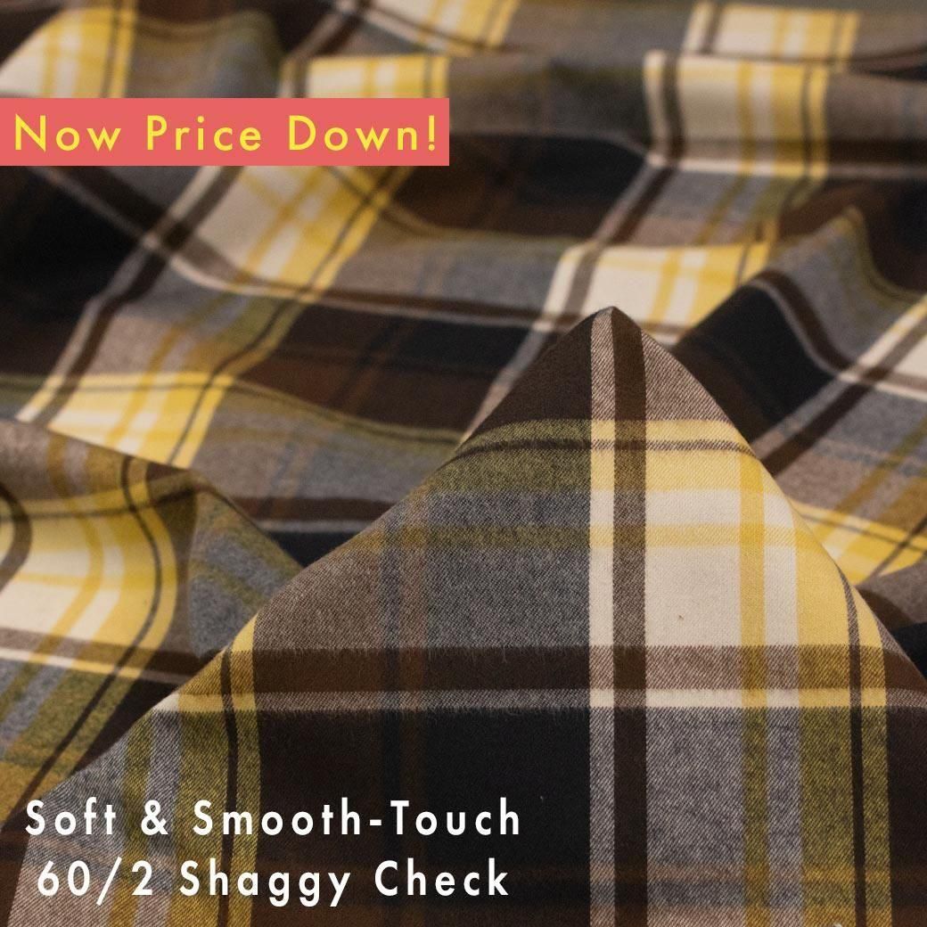 [ 起毛 ]なめらか仕上げの 60/2シャギーチェック・上質なさわり心地の生地です。