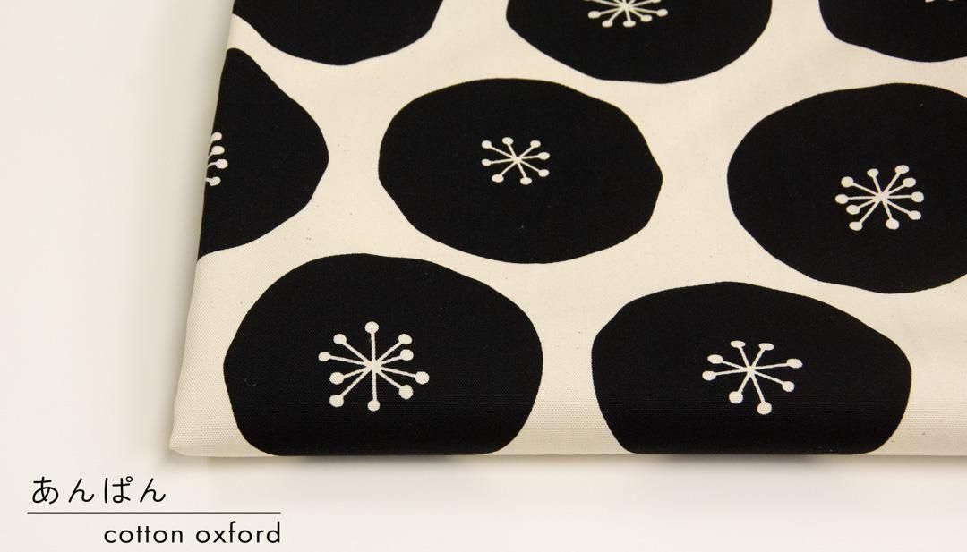 あんぱん|ドット|コットンオックス|25051-3 ナチュラル ブラック