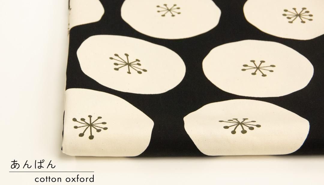 大きめのあんぱん柄が楽しく並んだ、ユニークでかわいいコットンオックス生地。