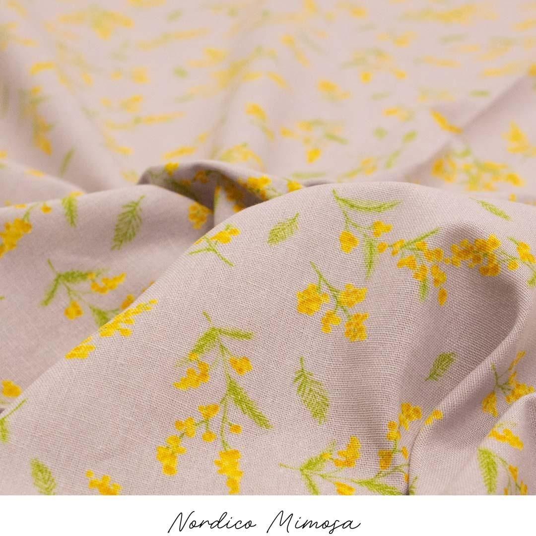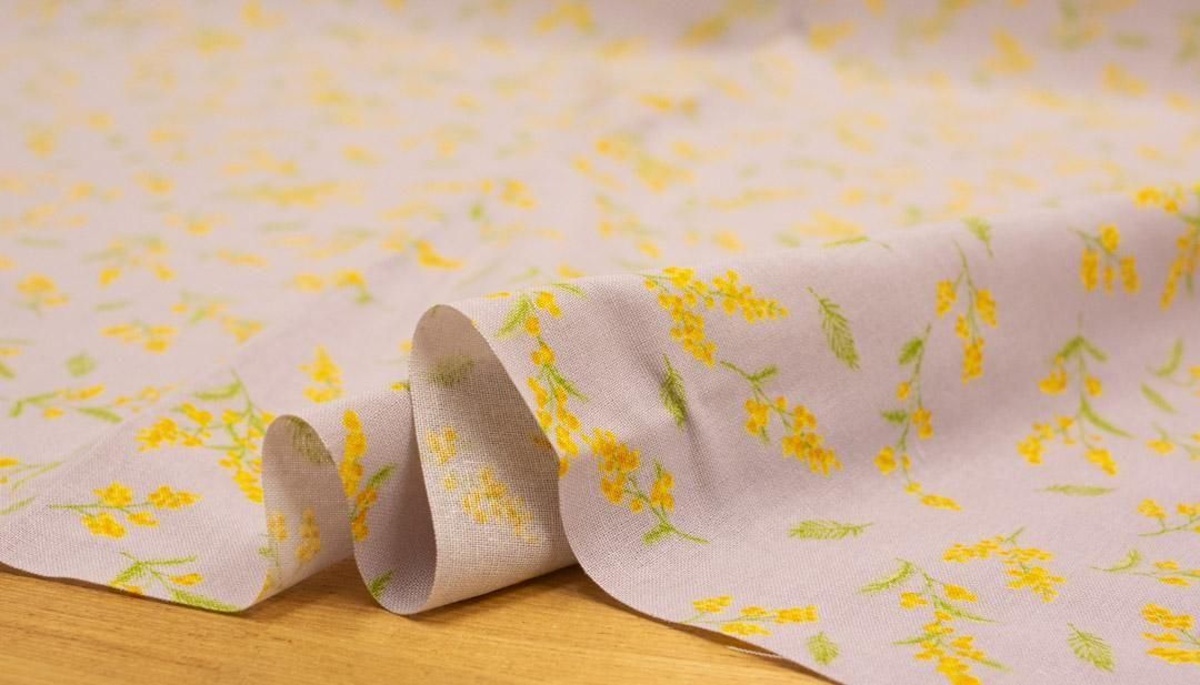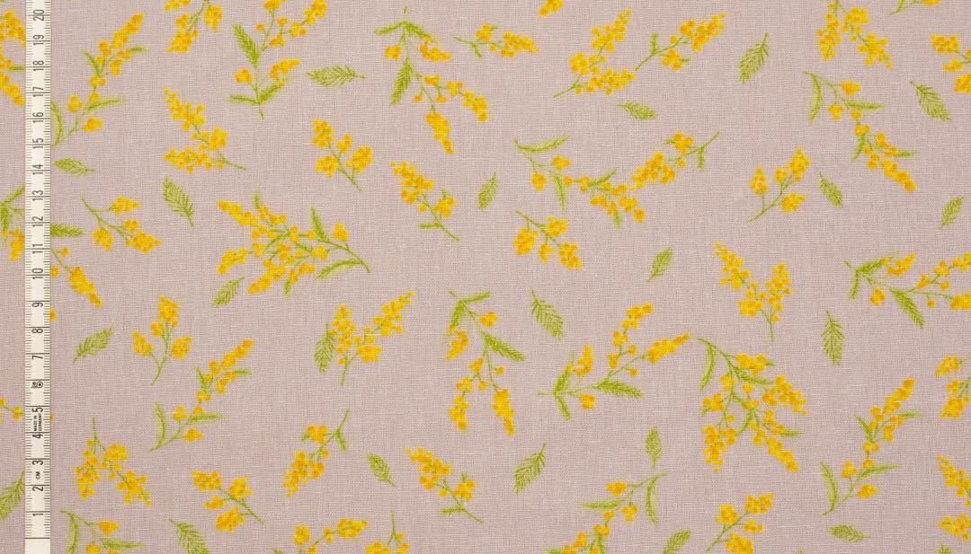 コットンリネンキャンバスに、ミモザの花を散りばめました。