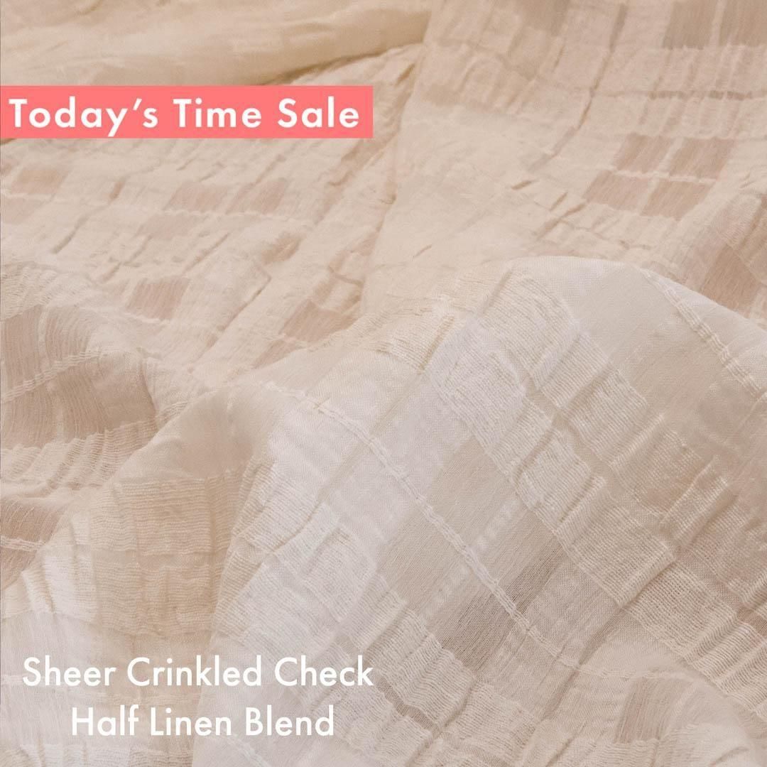 尾州で織ったシアークリンクルチェック|Sheer Crinkled Check – Half Linen Blend|25165-1 ナチュラル
