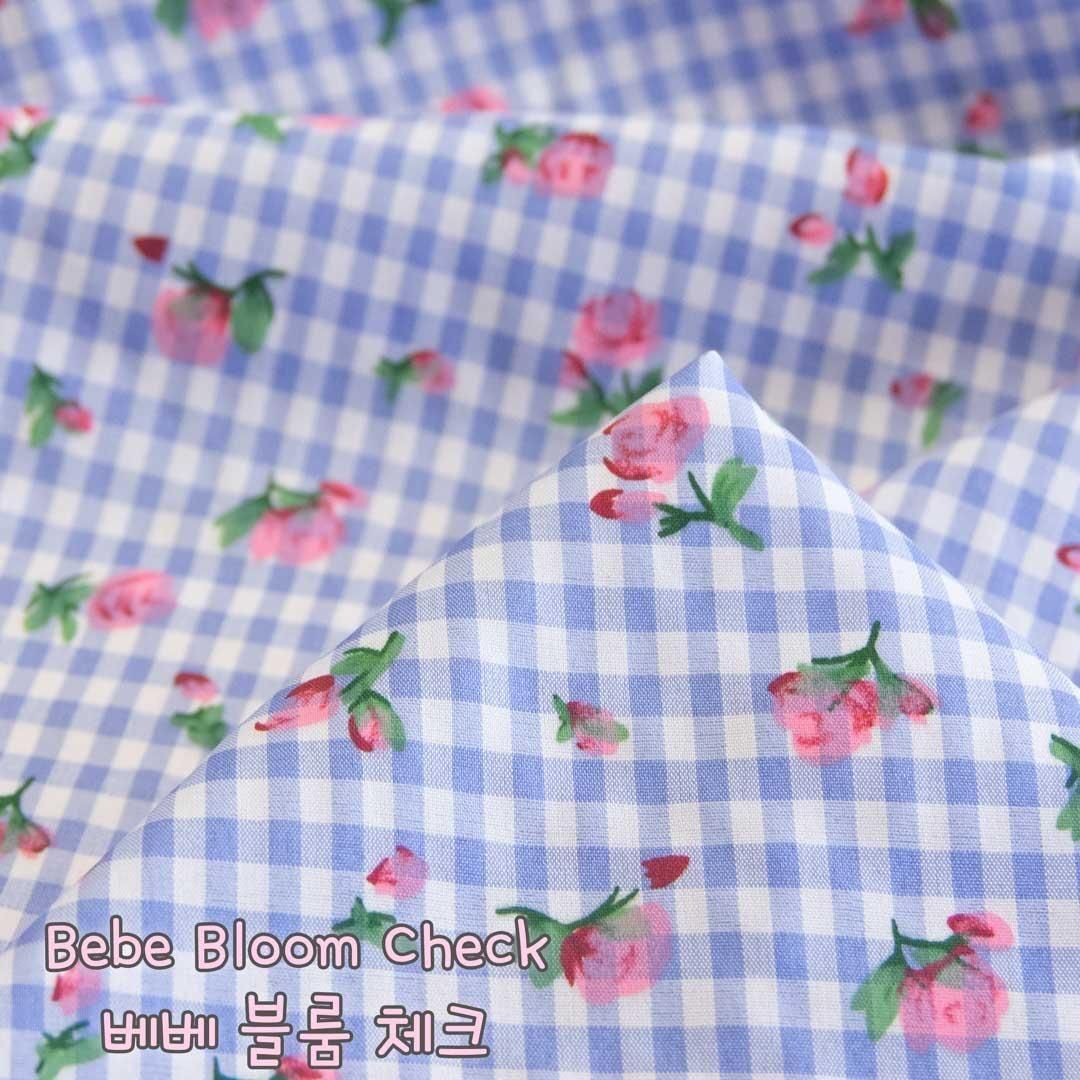 【ハギレ】【長さ   100cm】 Bebe Bloom Check|베베 블룸 체크|韓国風デザイン|