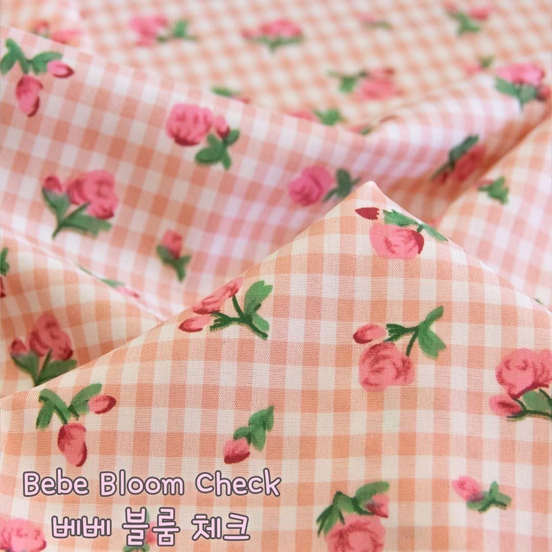 【ハギレ】【長さ   100cm】 Bebe Bloom Check|베베 블룸 체크|韓国風デザイン|