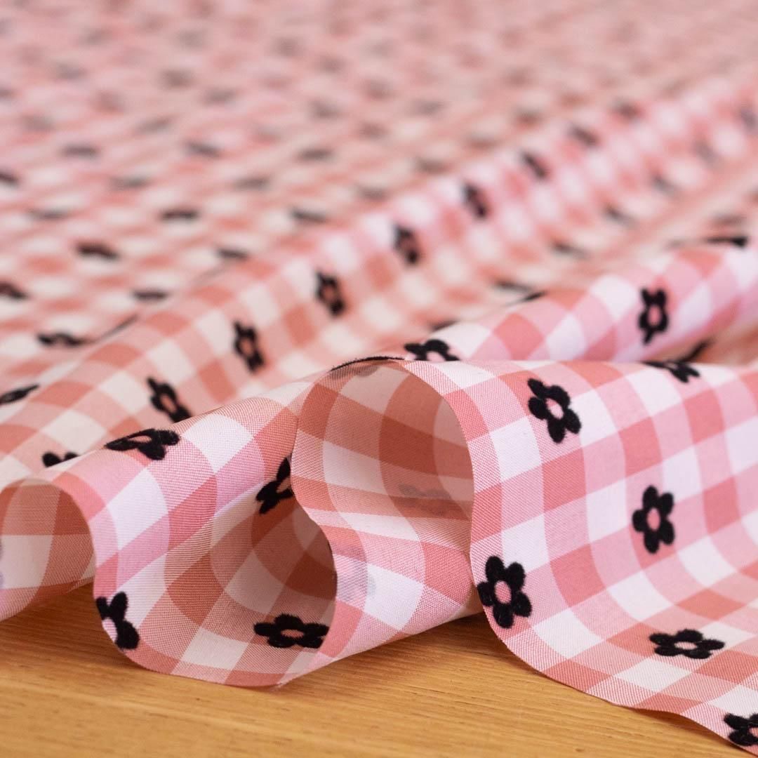 【ハギレ】【長さ 100cm】 Bebe Bloom Check|베베 블룸 체크|韓国風デザイン|