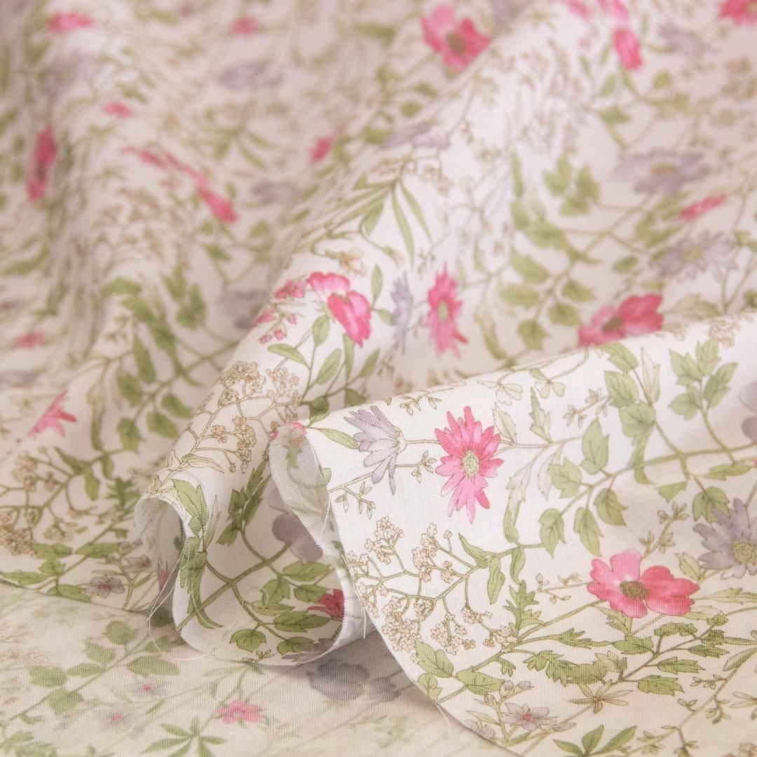 やや細番手の60ローンに、可憐な小花柄をプリントしました。