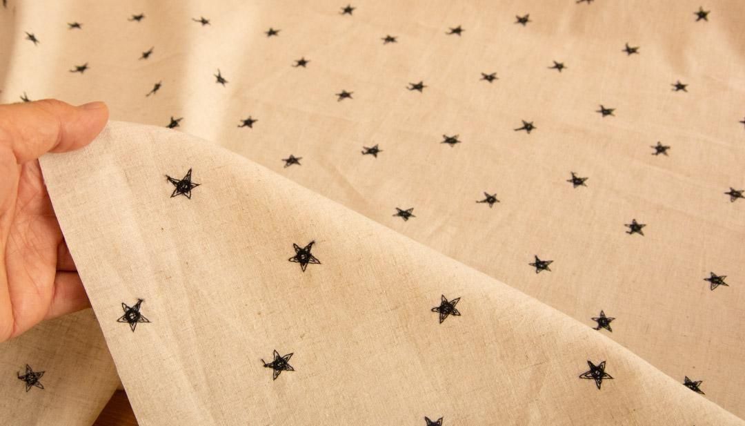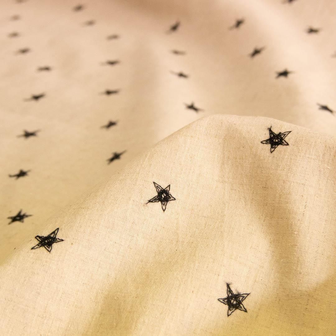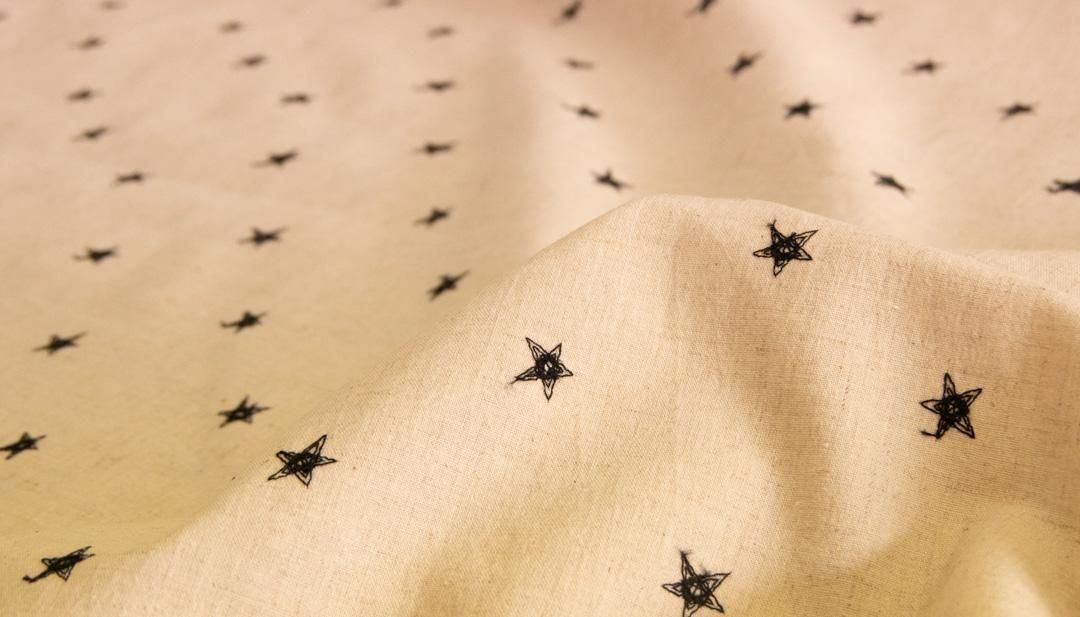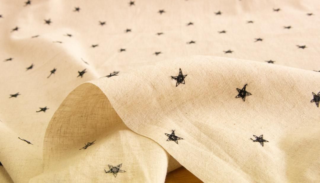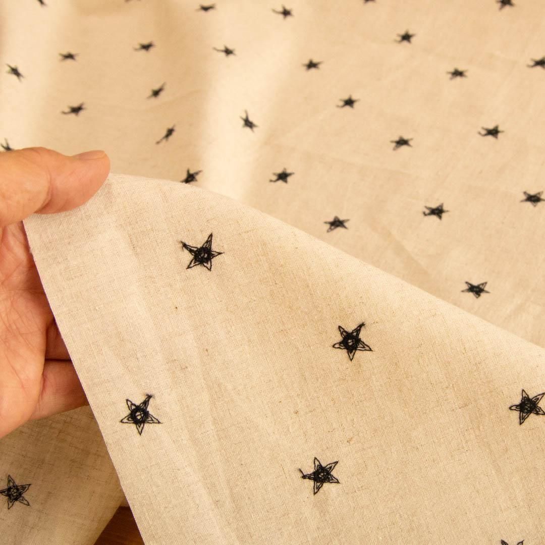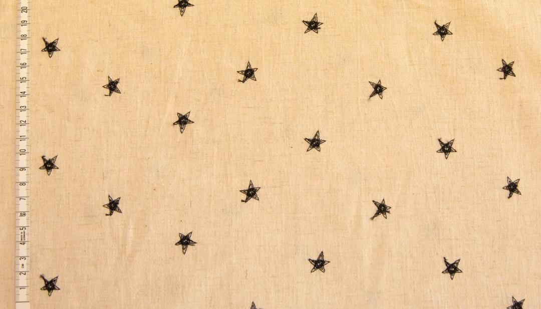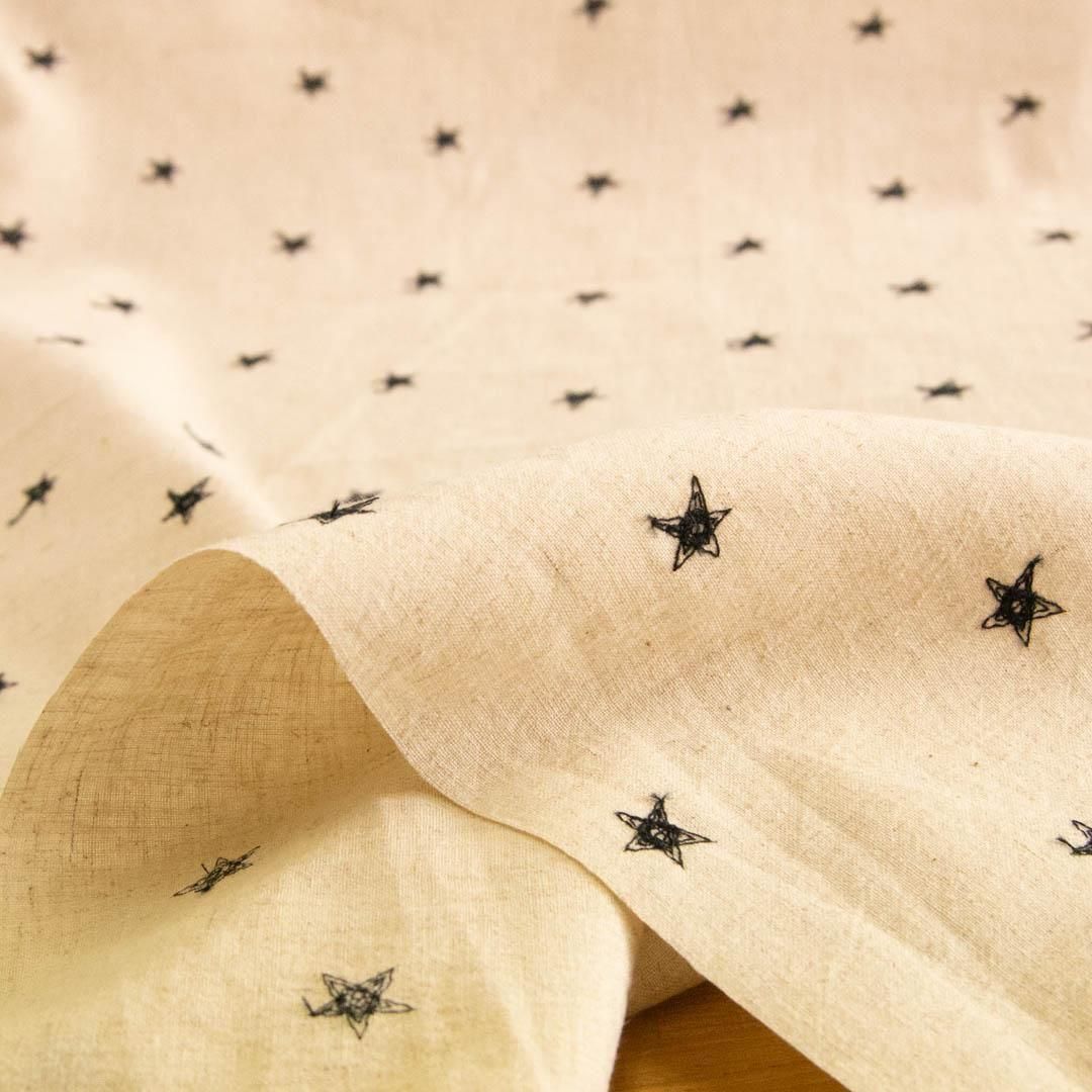 ナチュラルなコットンリネンシーチングに、ブラックの線描きステラを刺繍