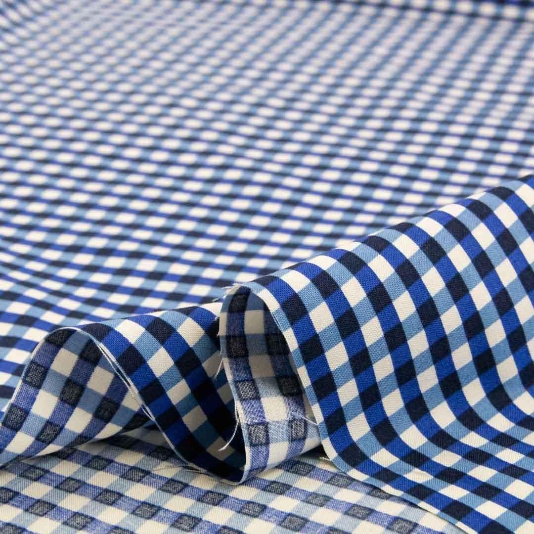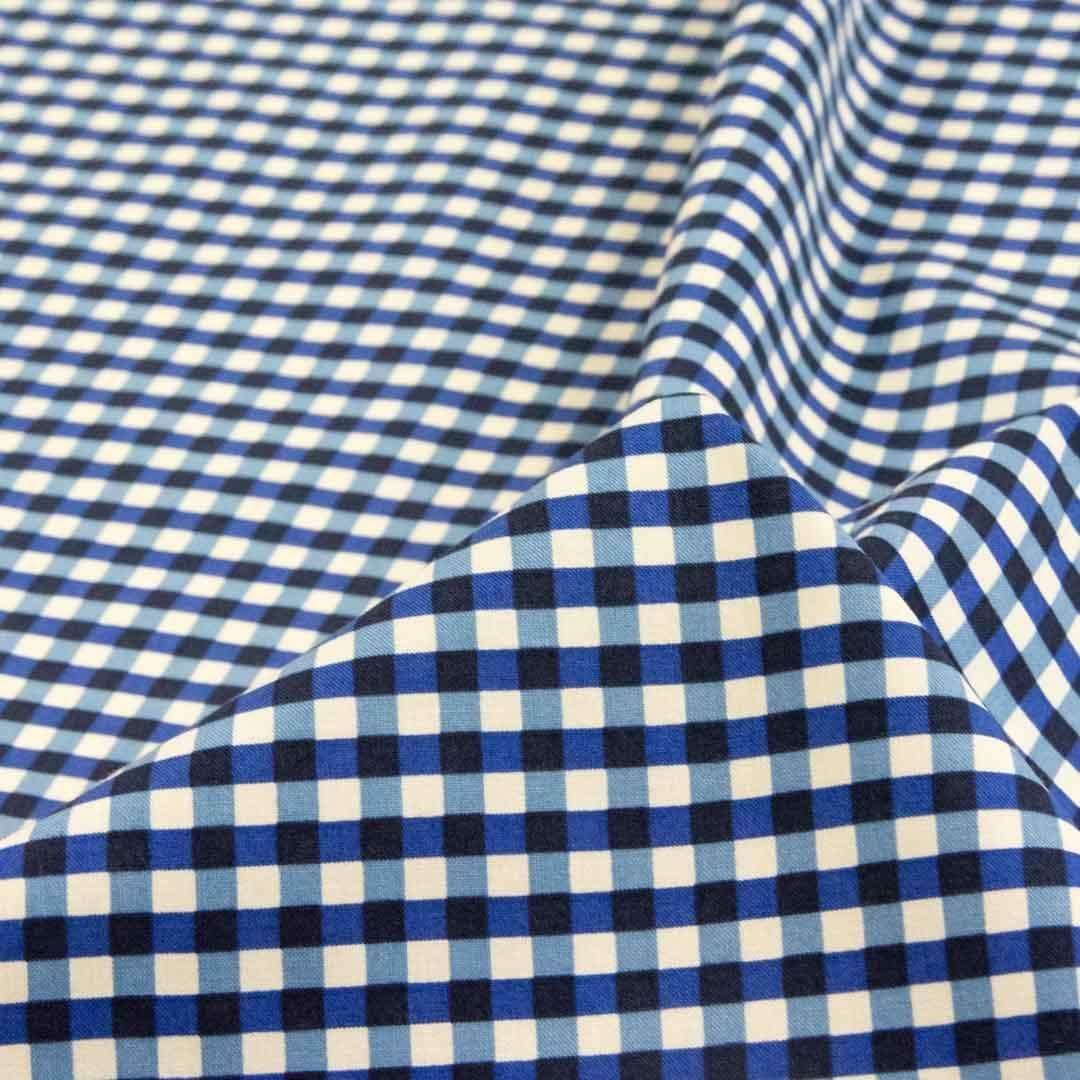 バイカラーギンガムチェック|YUWA |コットンシャーティング|25192-18 ネイビー-ブルー