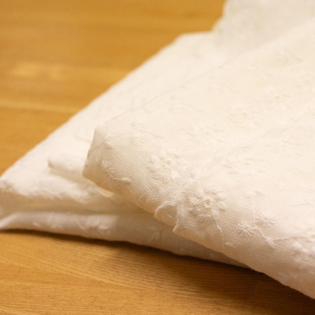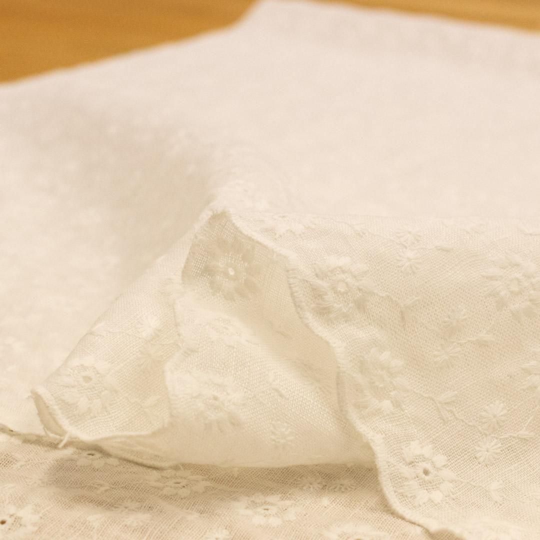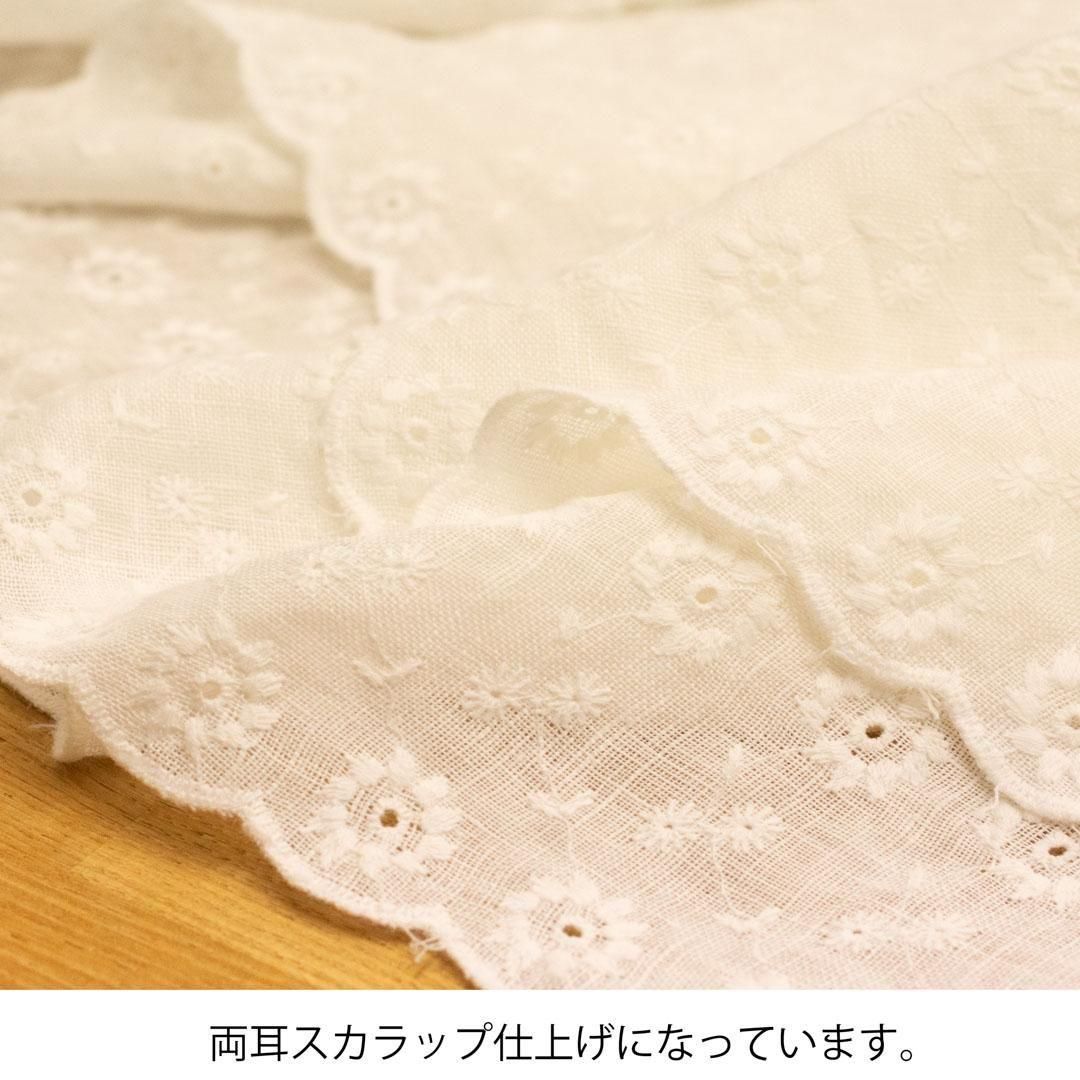 【ハギレ】【長さ 125cm】 Linen Lace with Small Floral Embroidery|リネン|135cm巾|両耳スカラップ|