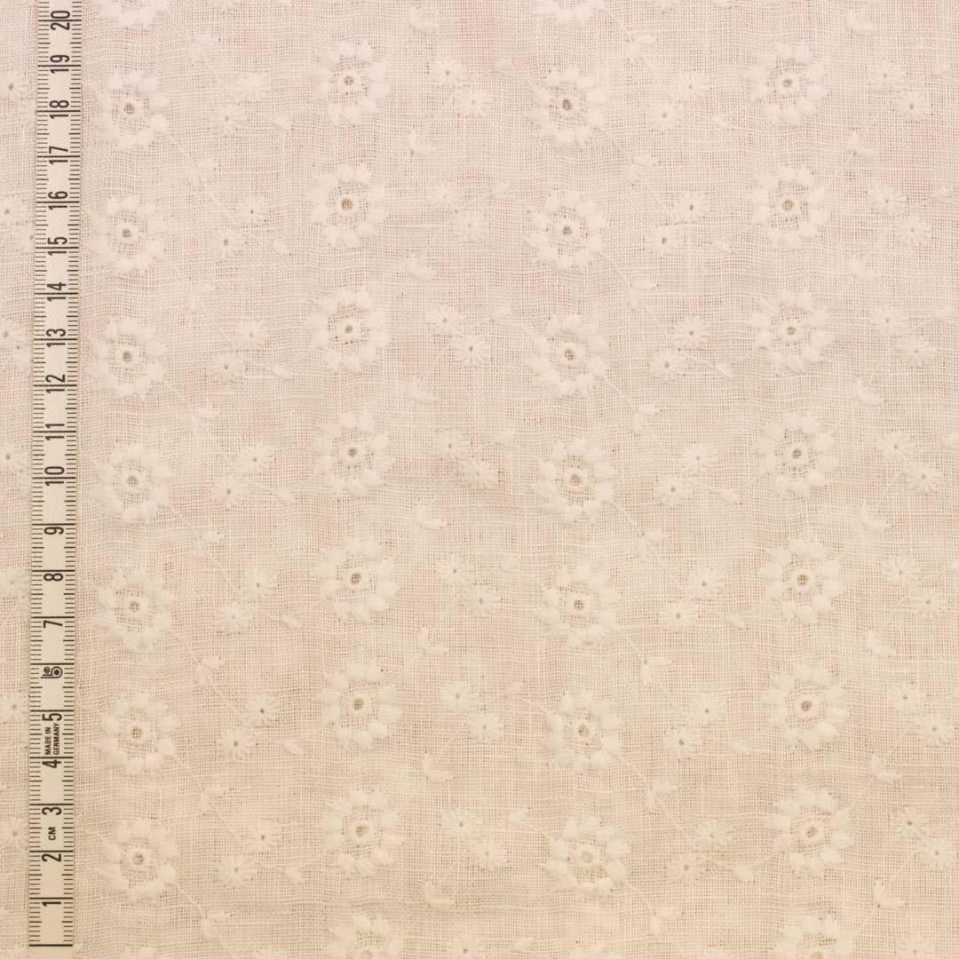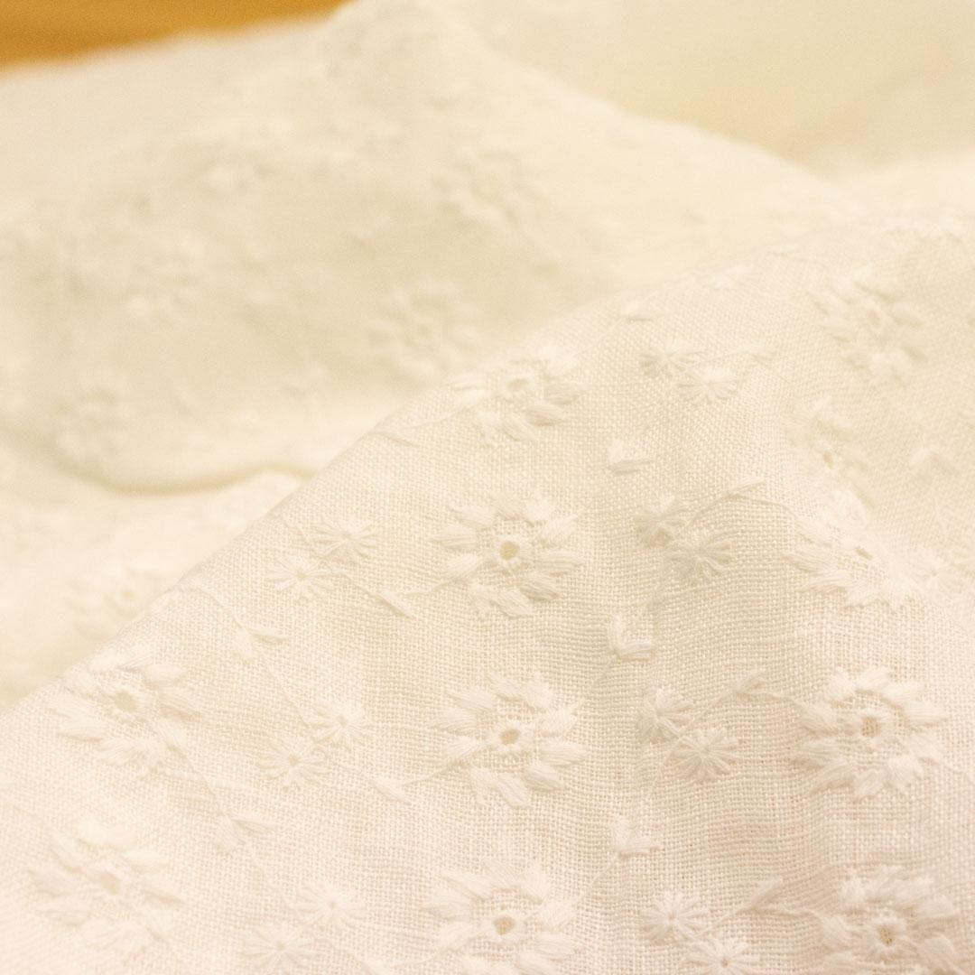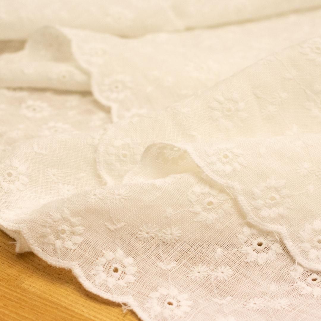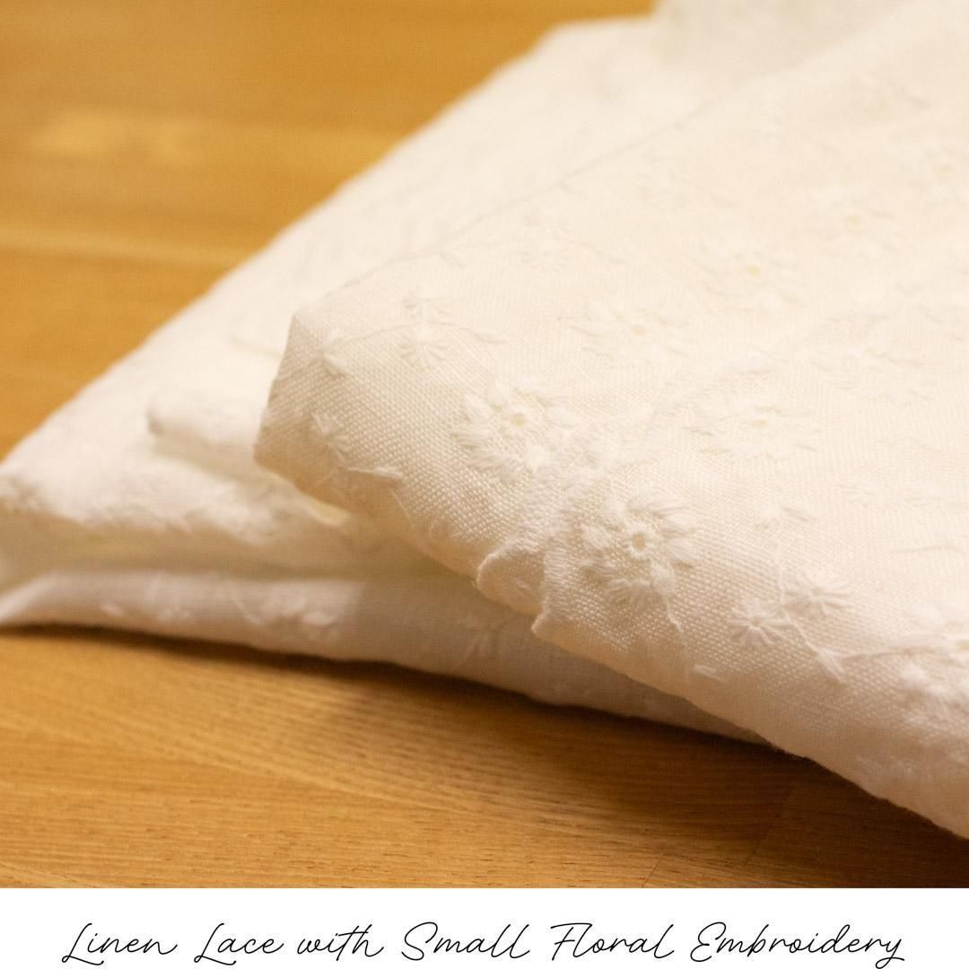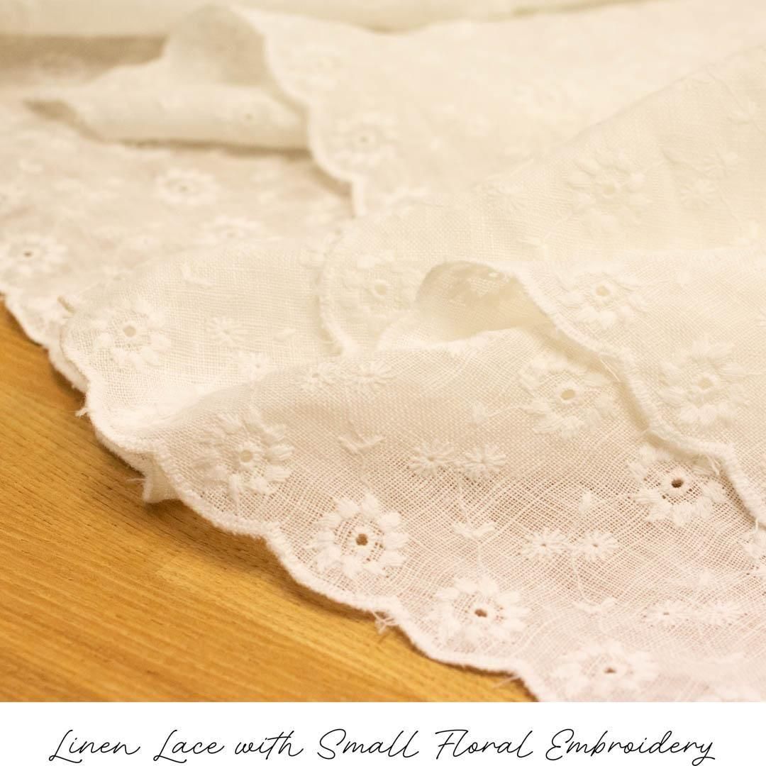【ハギレ】【長さ 155cm】 Linen Lace with Small Floral Embroidery|リネン|135cm巾|両耳スカラップ|