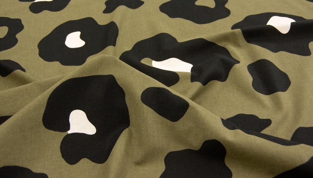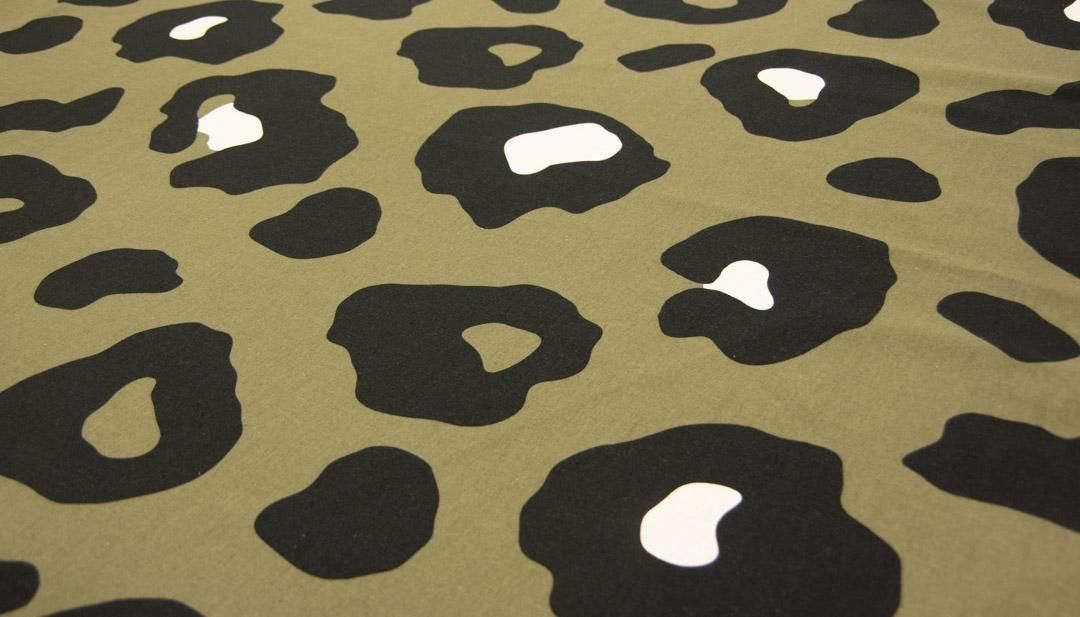 大きめのレオパード柄に、きれいなカラーをアクセントとして効かせたデザイン