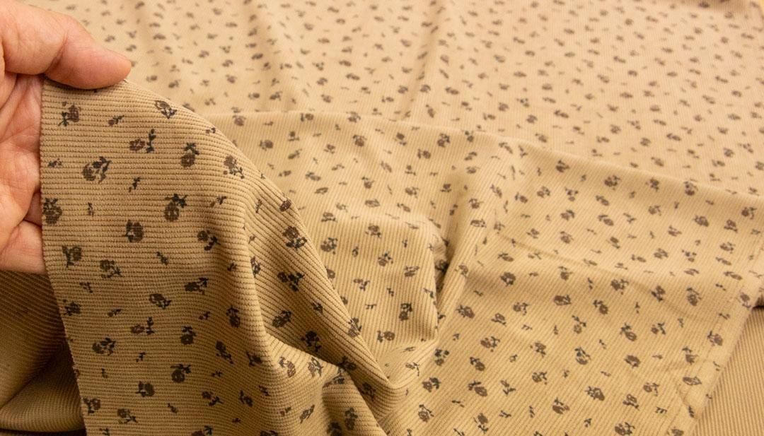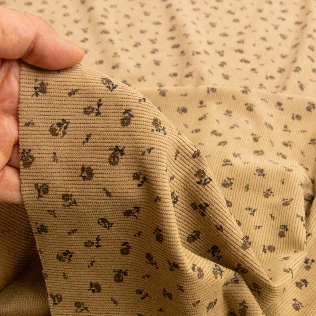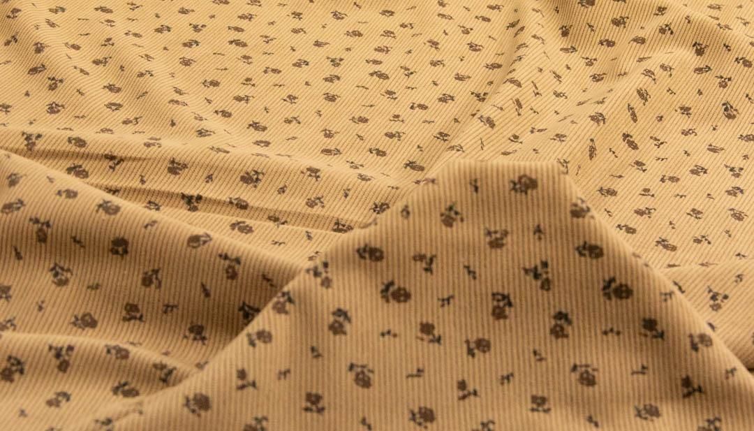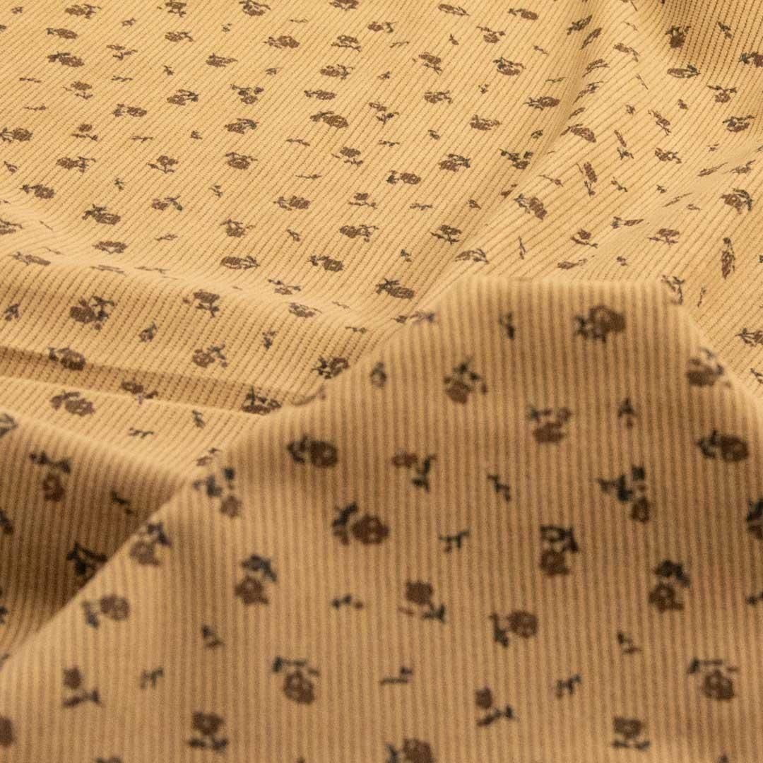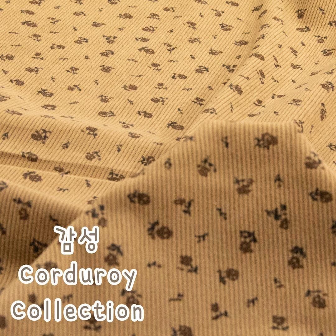 やや軽め仕上げのポリエステルコーデュロイに、韓国風デザインをプリント