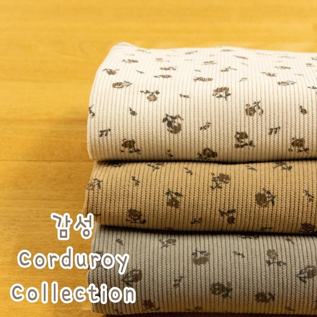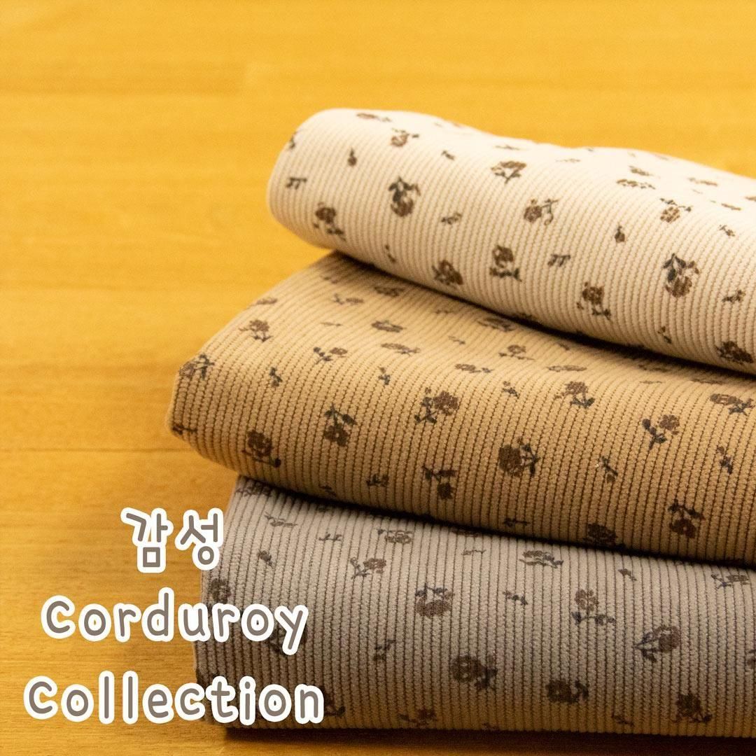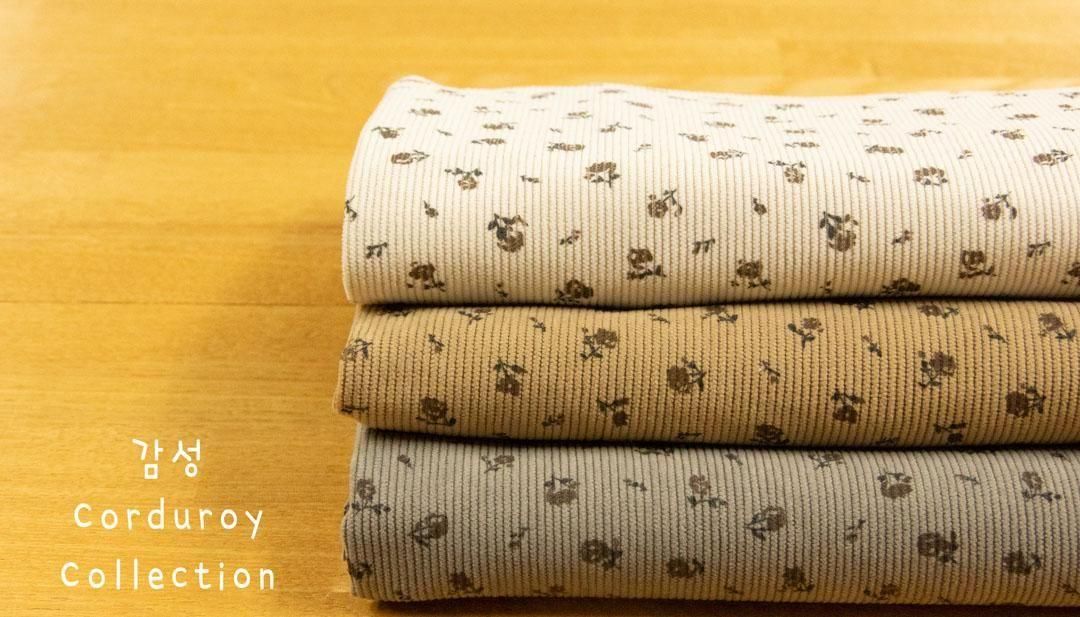 やや軽め仕上げのポリエステルコーデュロイに、韓国風デザインをプリント