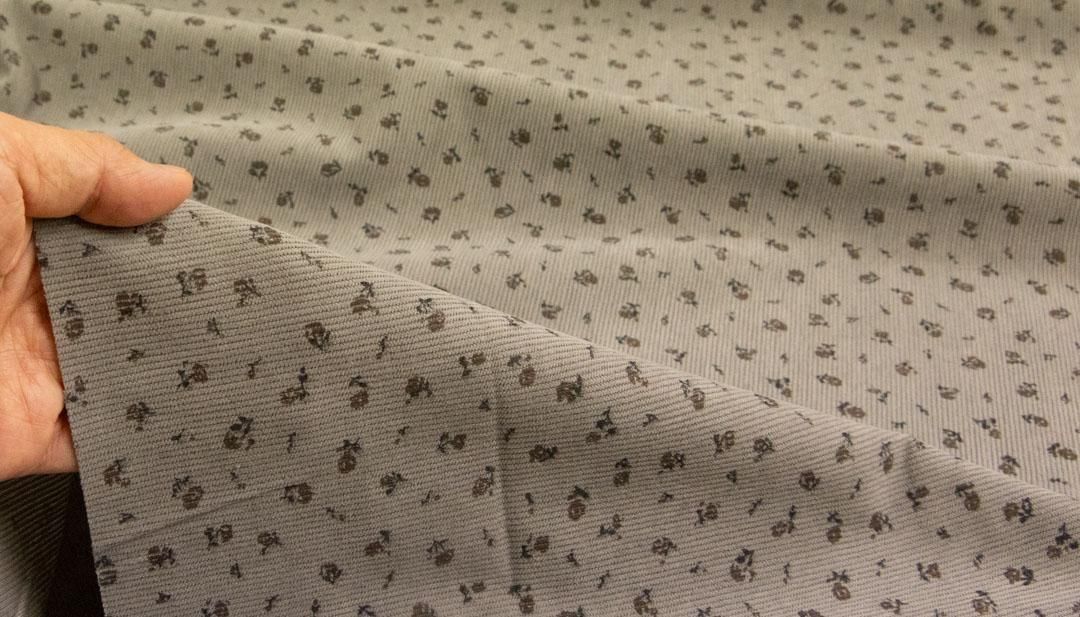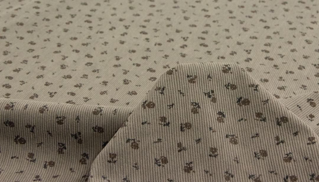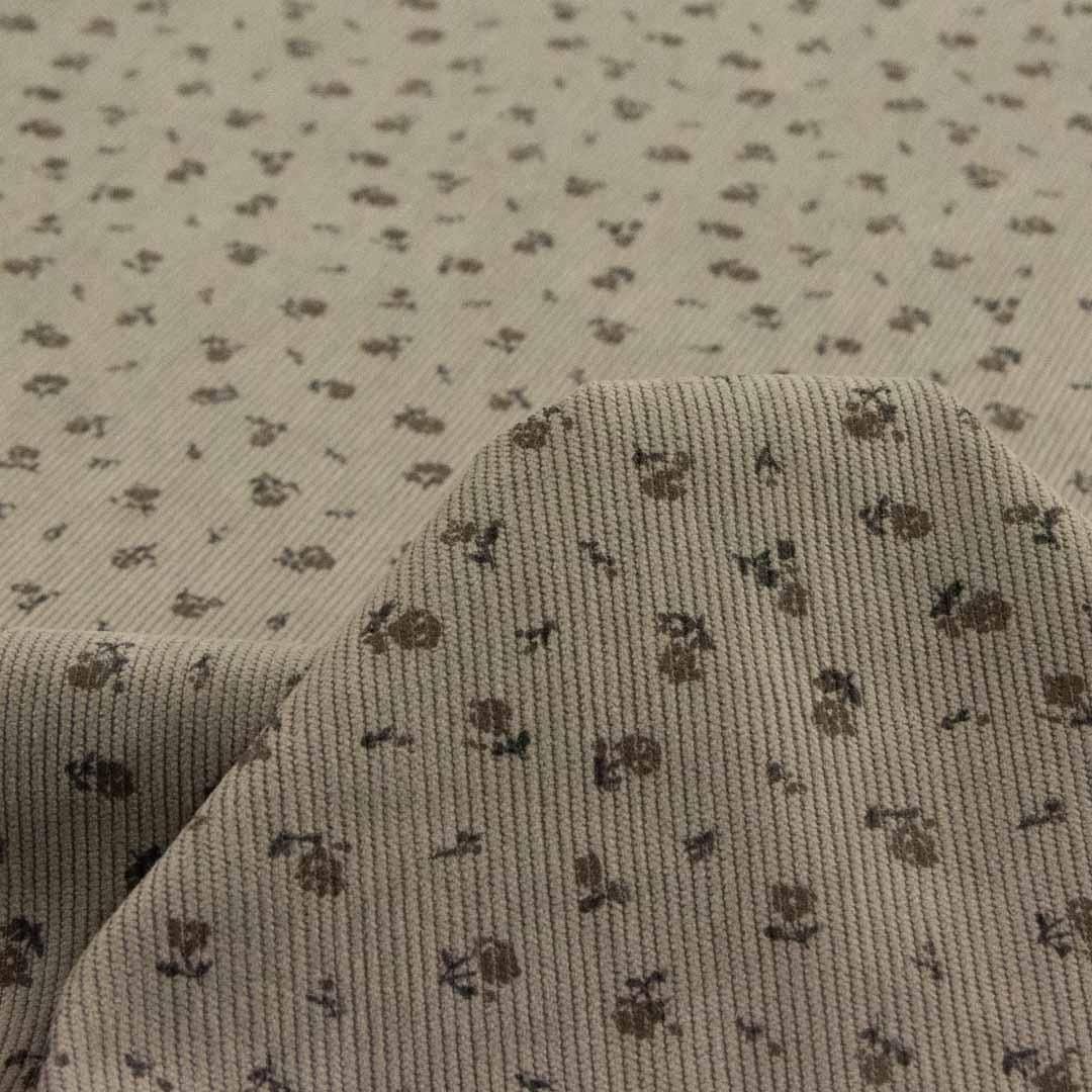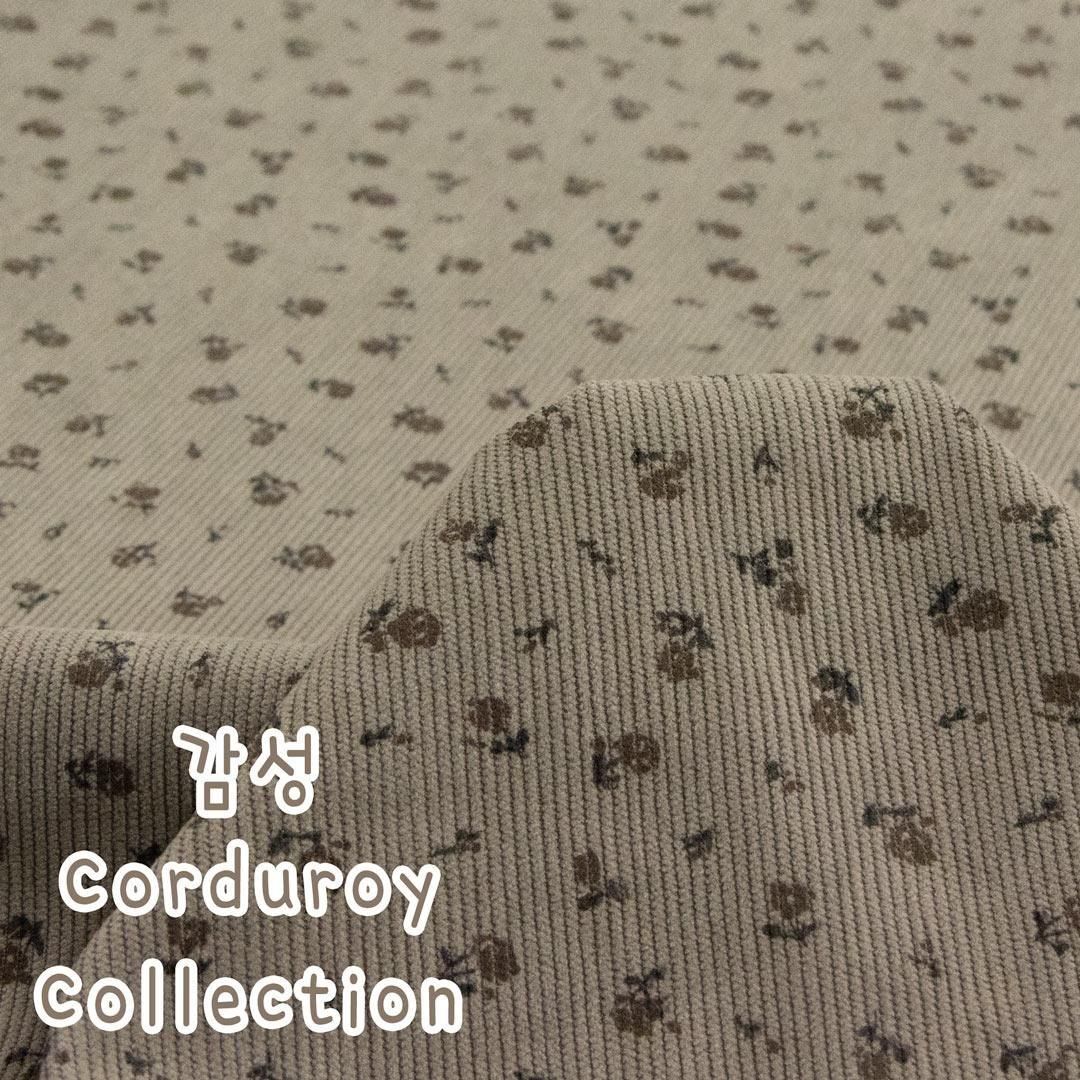 やや軽め仕上げのポリエステルコーデュロイに、韓国風デザインをプリント