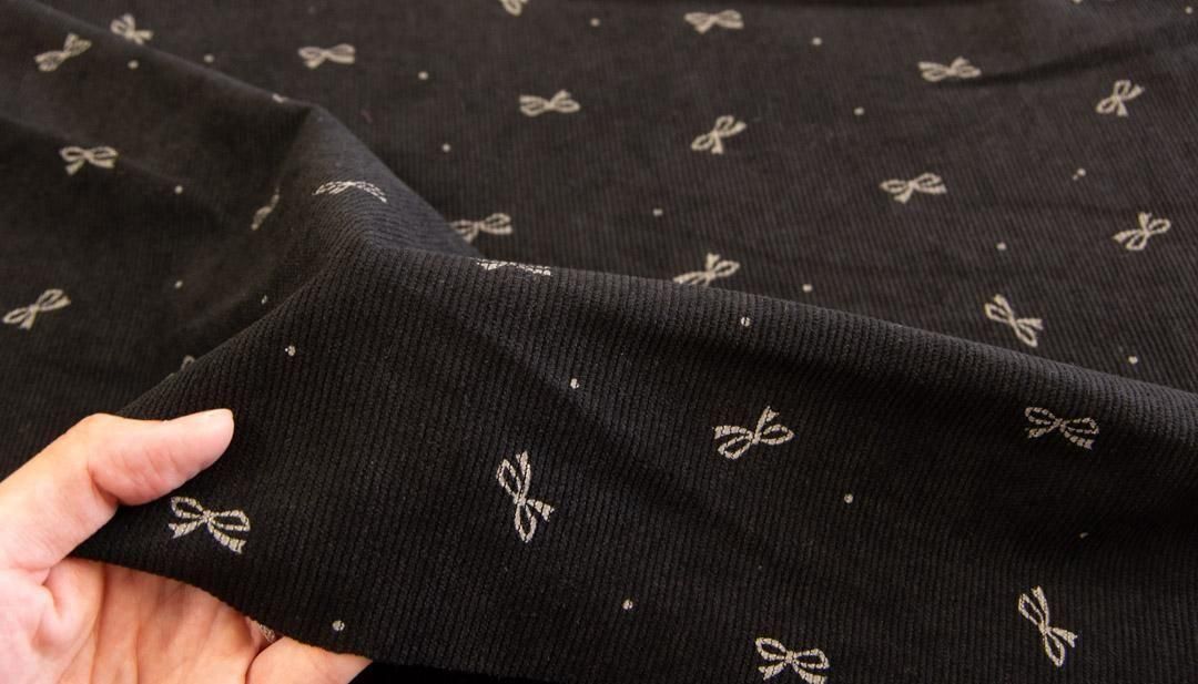 やや軽め仕上げのポリエステルコーデュロイに、韓国風デザインをプリント