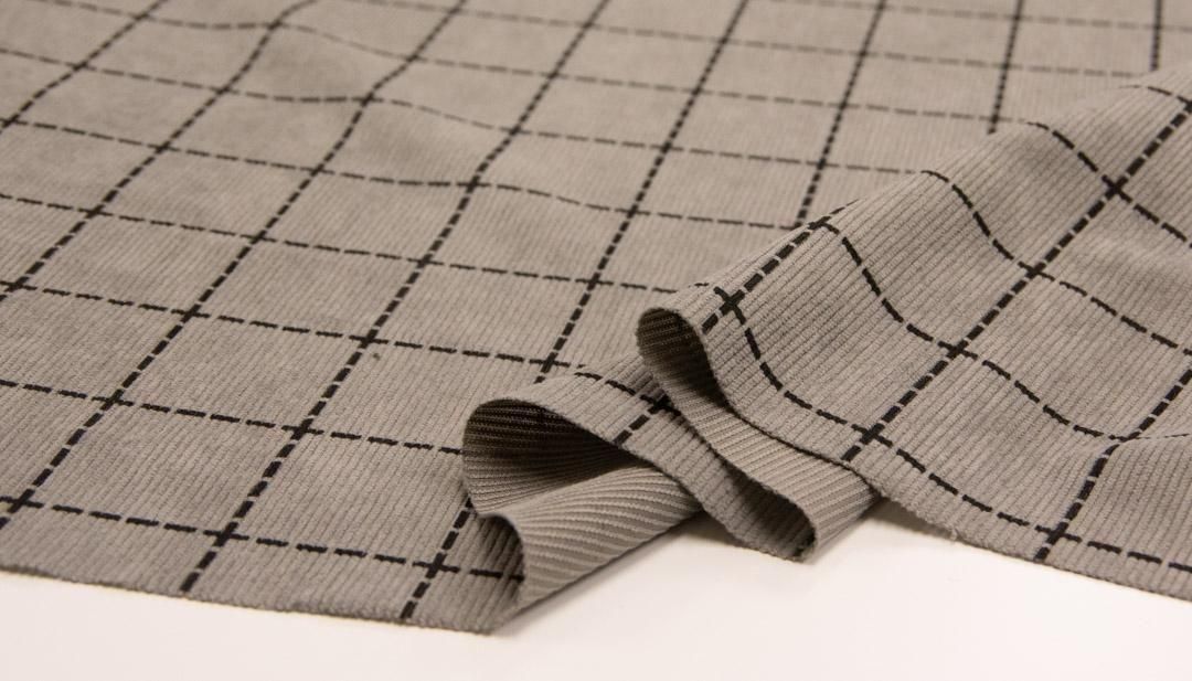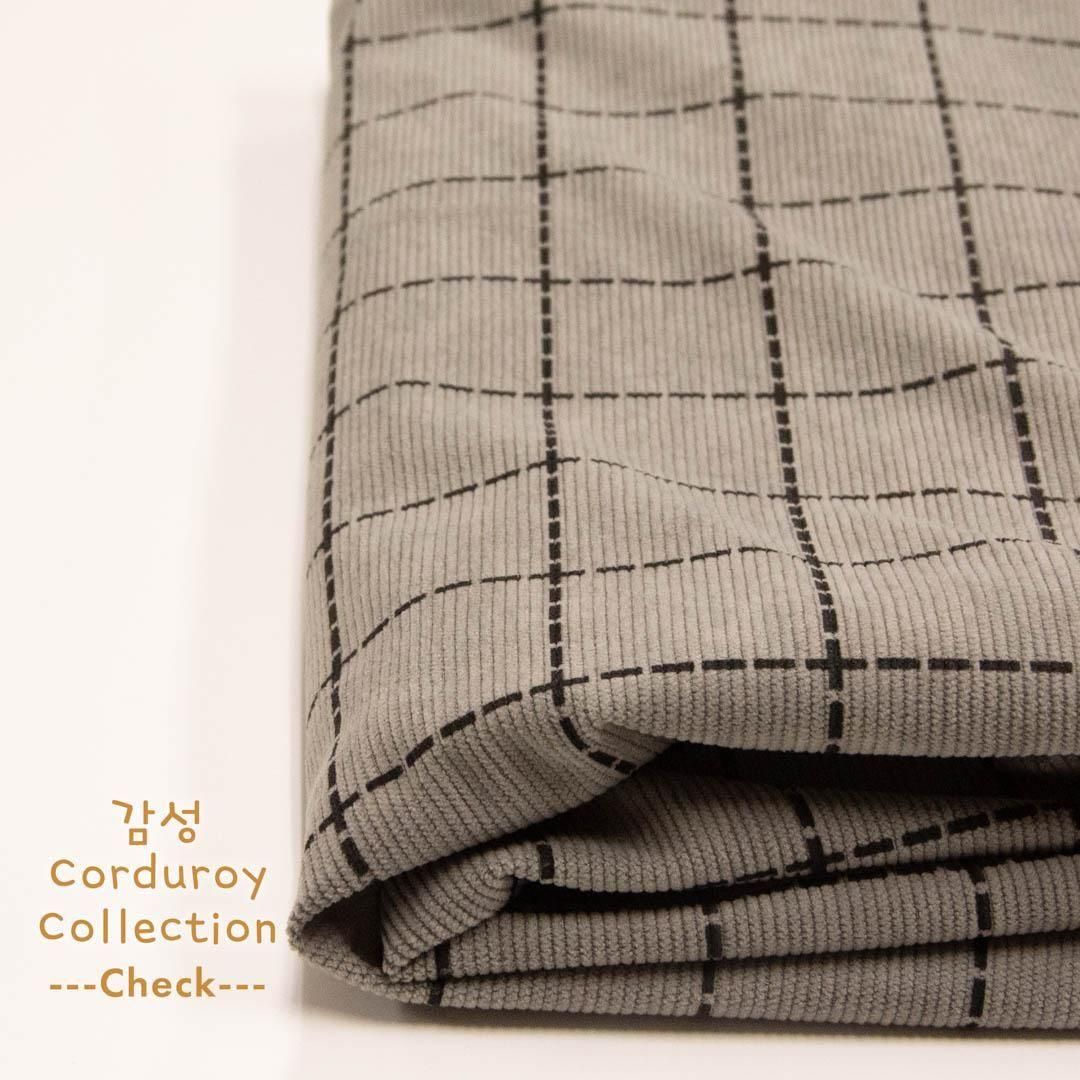 やや軽め仕上げのポリエステルコーデュロイに、韓国風デザインをプリント