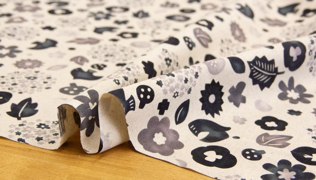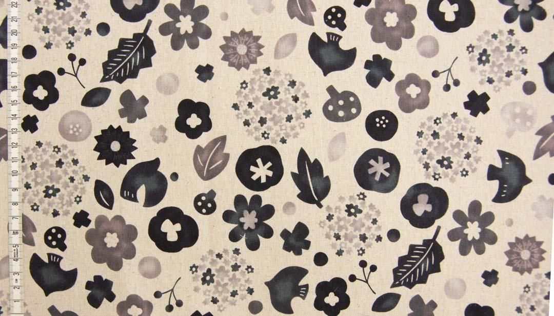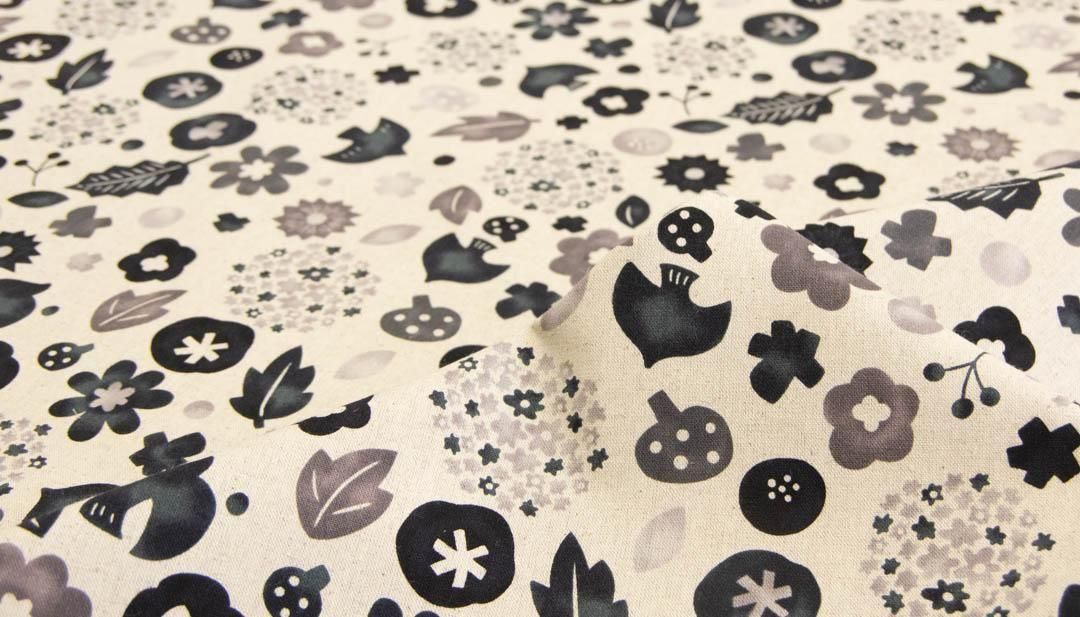 Nordico Bird & Bloom|ノルディコバード&ブルーム|コットンリネンキャンバス|25196-3 ブラック