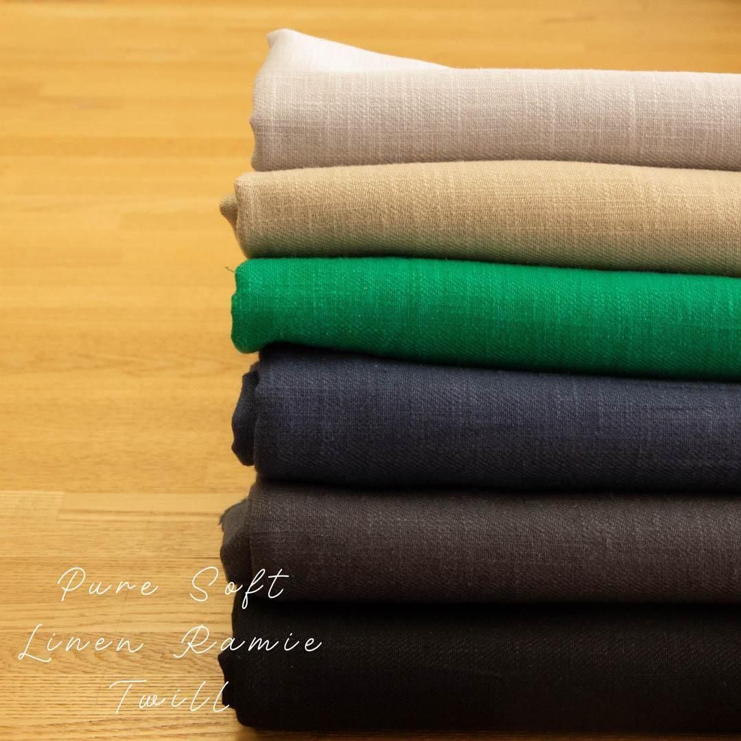 リネン80%・ラミー20%を使用した、麻100%の綾織り生地。