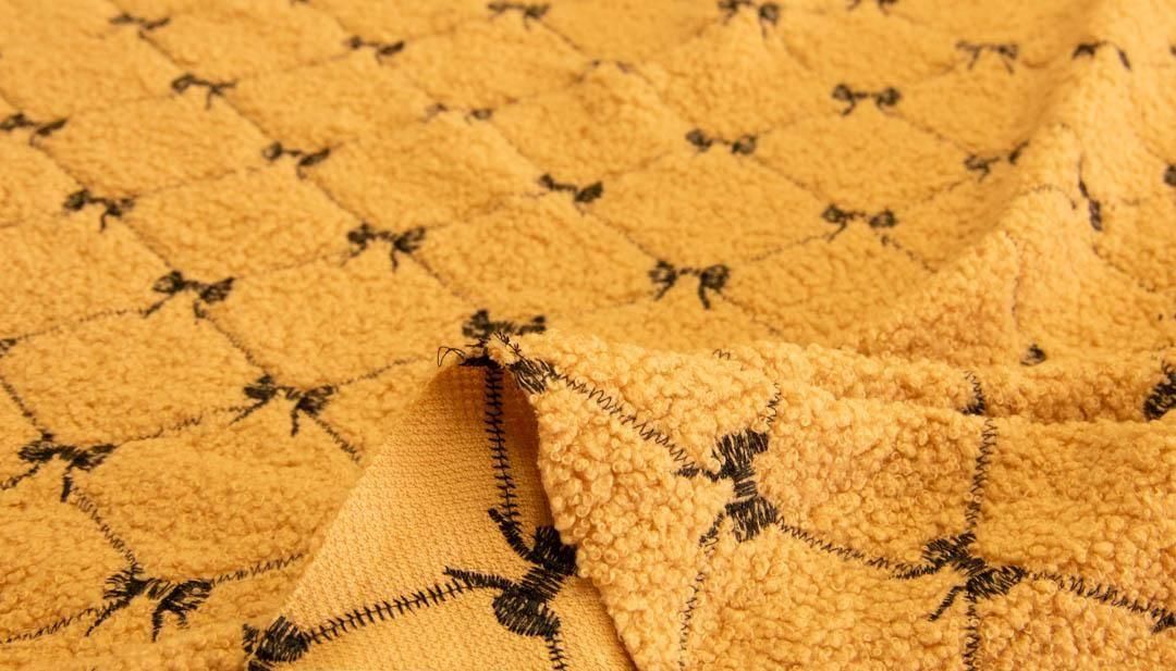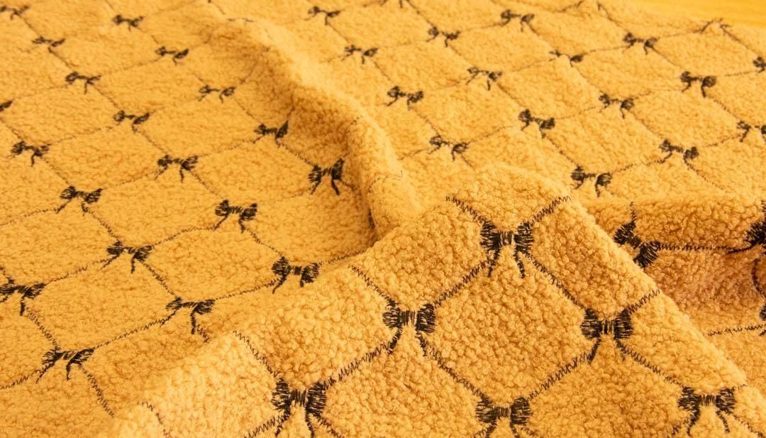 ふわふわのプードルファーに、かわいいリボン柄を刺繍しました