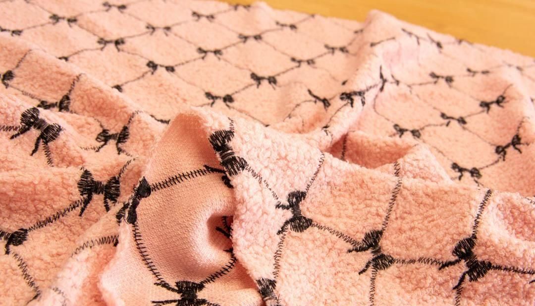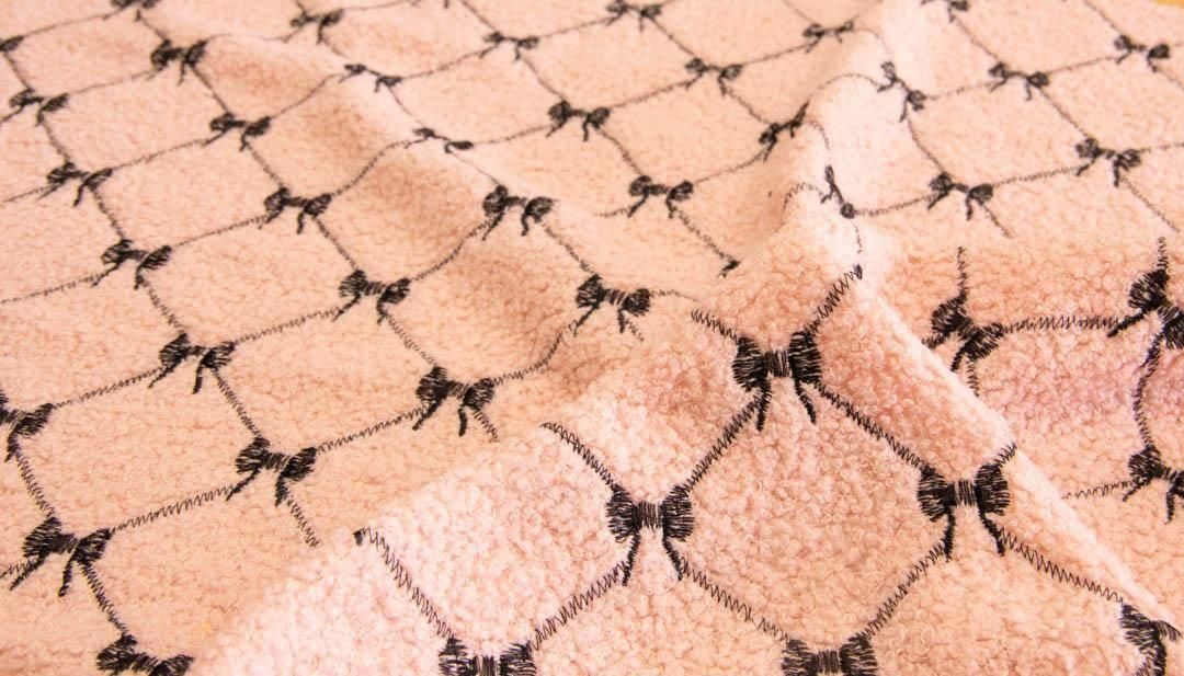 ふわふわのプードルファーに、かわいいリボン柄を刺繍しました