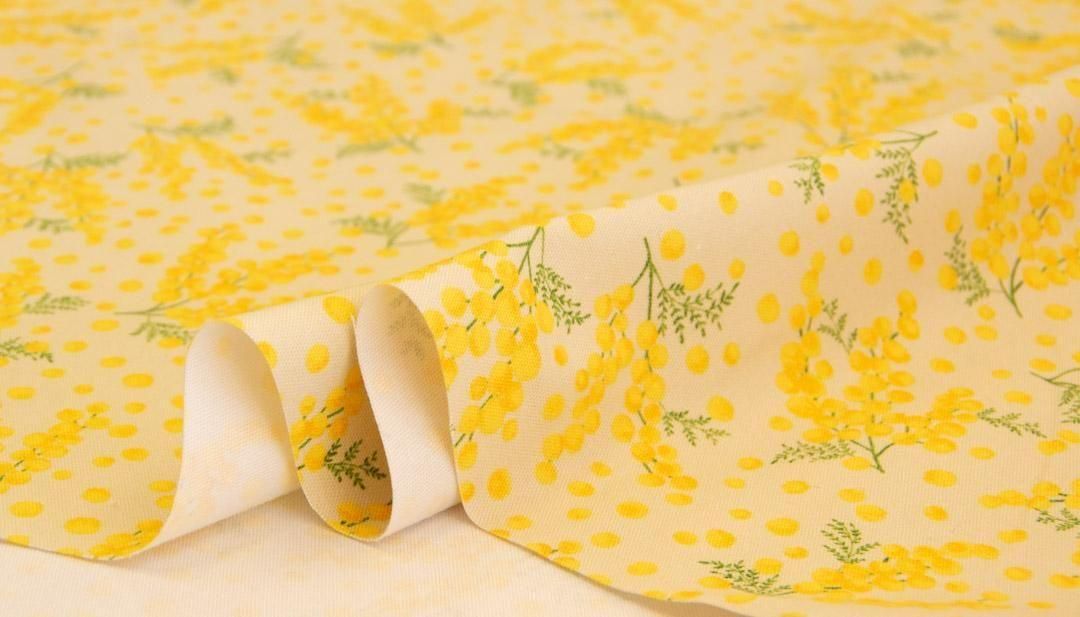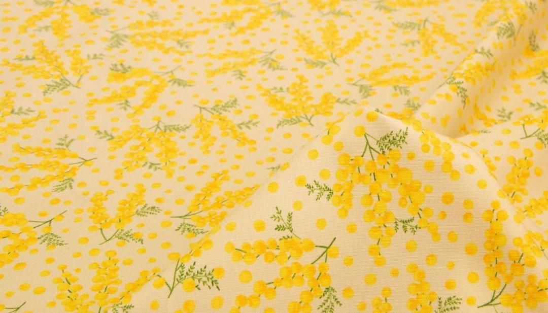 [ コットンオックス ] Mimosa Bloom Falling|ミモザ柄生地です。