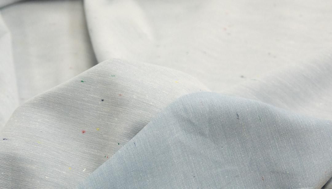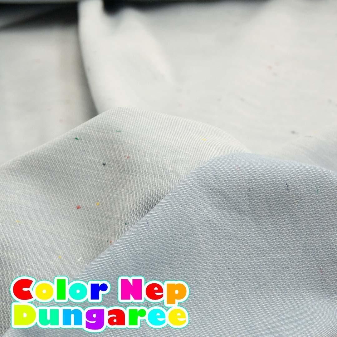 つぶつぶネップがちりばめられた、ポップでかわいいダンガリー