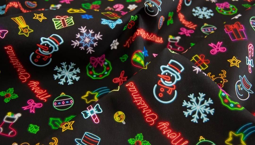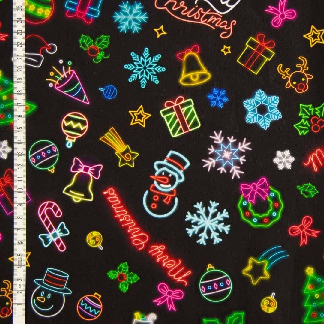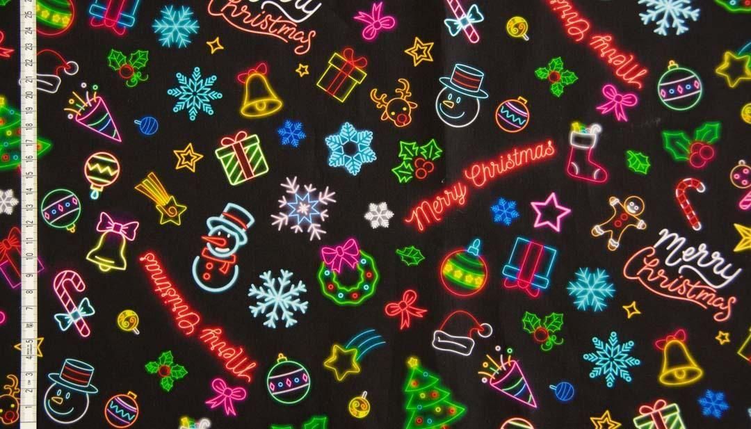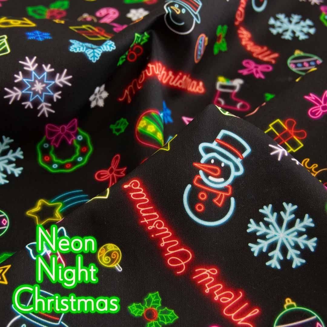 ネオン管で描かれたようなクリスマスモチーフが並ぶ、ポップで遊び心のあるデザイン。