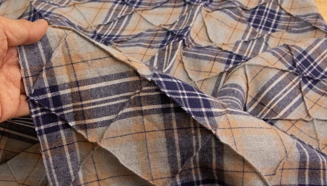 斜めに入ったタックが立体感を生み出し、表情豊かな仕上がりになっています。