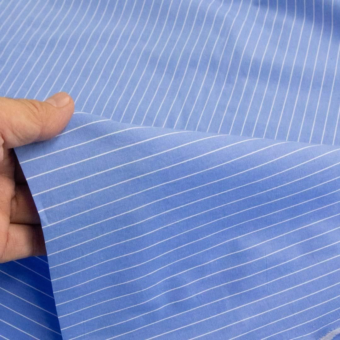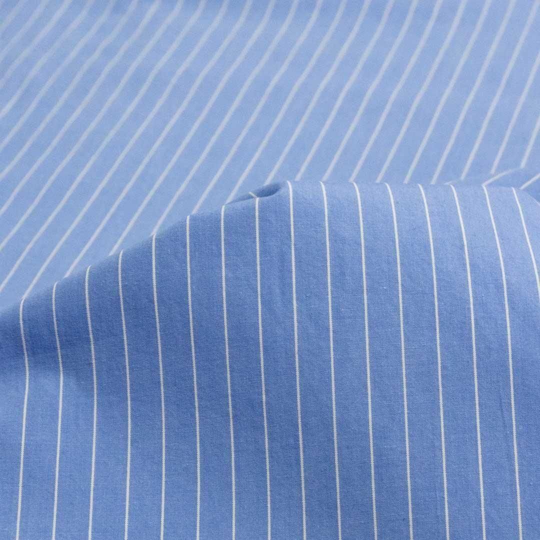 ブルーベースに細かなピンストライプが走る、40タイプライターと60タイプライター どちらも145cm巾、タンブラー仕上げによるやさしい風合いが特徴。 シンプルながら大人っぽい印象に仕上がります。 糸の太さが異なり、40タイプライターは適度なハリがあり、パンツなどにも仕立てやすいしっかりとした生地感。 60タイプライターは細めの糸で織られており、やや軽やかな仕上がりながら透け感はなく、ワンピースやブラウスなどのアパレルアイテムにおすすめです。 同じデザインながら糸の太さによる厚みと風合いの違いを楽しめる、2種類のストライプ生地をご用意しました。 [ こちらの生地は色ちがいもあります ][ Color Options・色彩选项 ] 100% COTTON MADE IN JAPAN