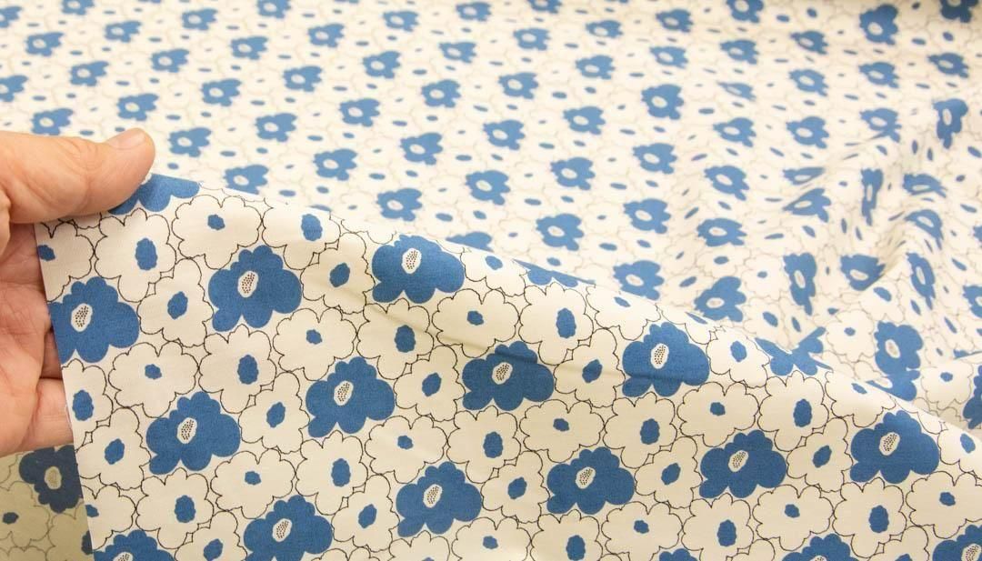 コットンブロードに、北欧風の線描きの花たちをちいさく縮めデザインしました。