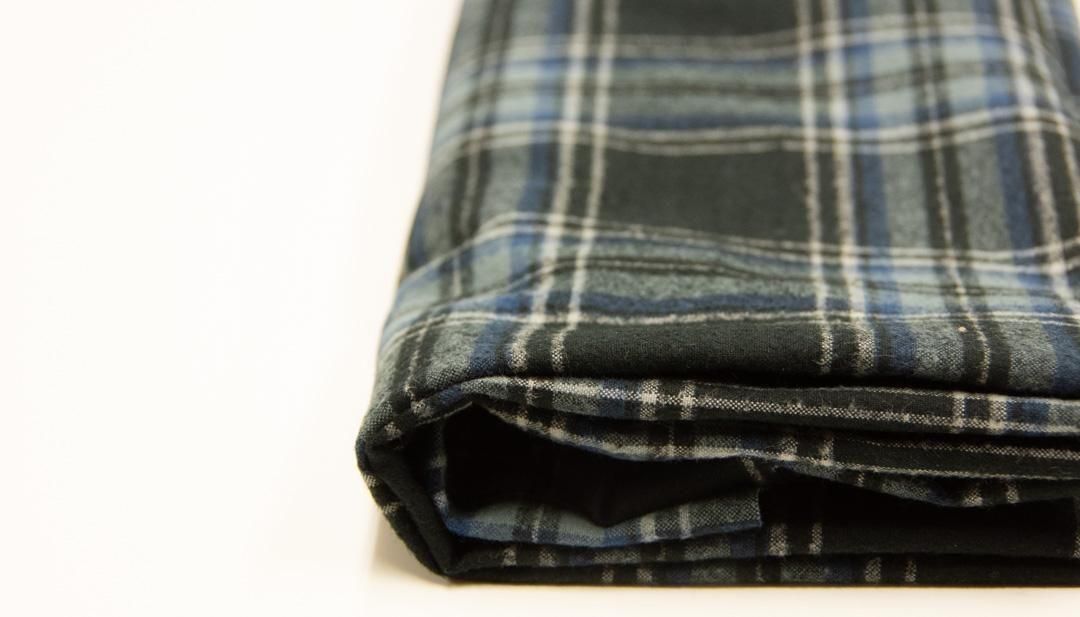 40番手の双糸・40/2 × 40/2 の糸で織り上げた、先染めのチェック生地。