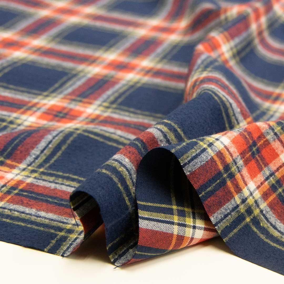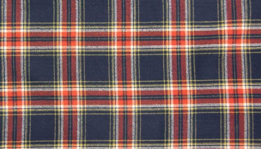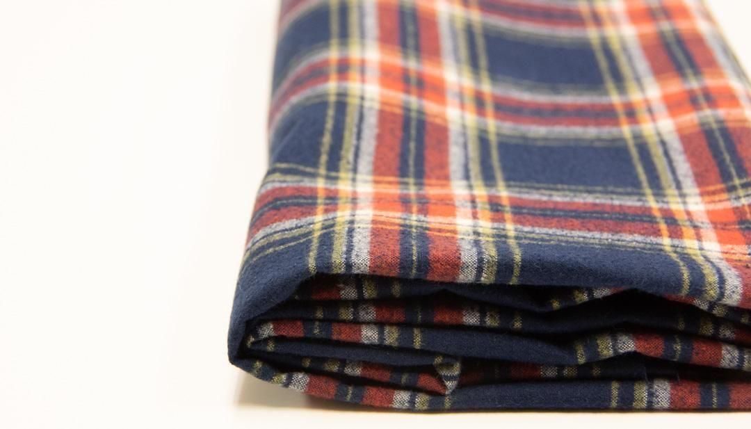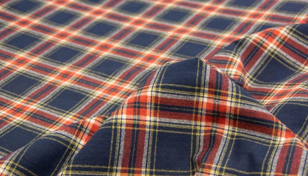40番手の双糸・40/2 × 40/2 の糸で織り上げた、先染めのチェック生地。