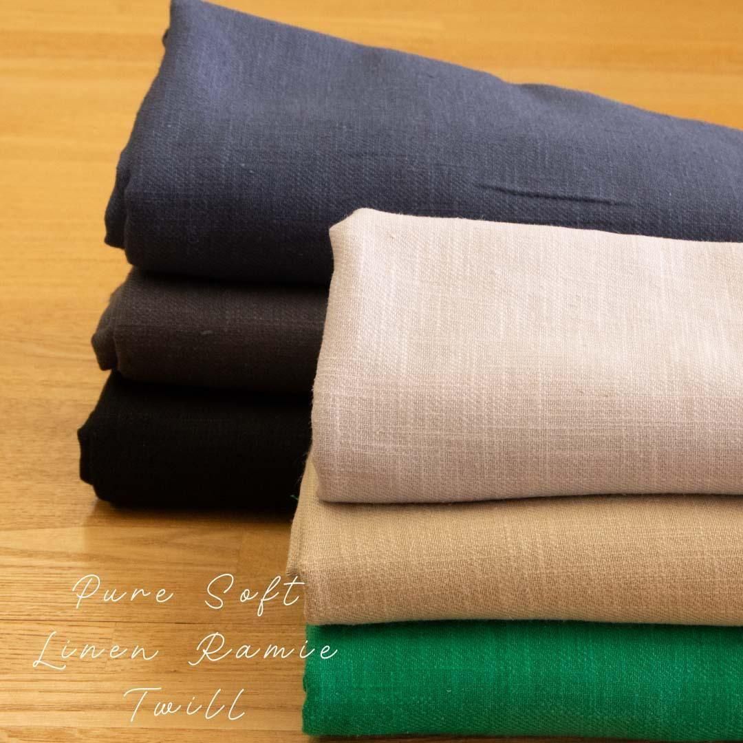 リネン80%・ラミー20%を使用した、麻100%の綾織り生地。