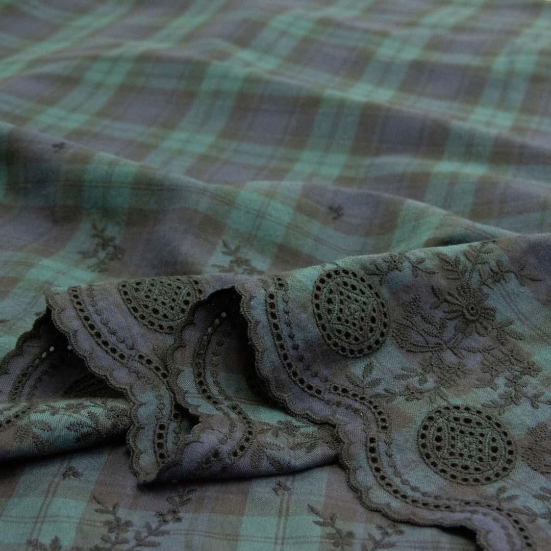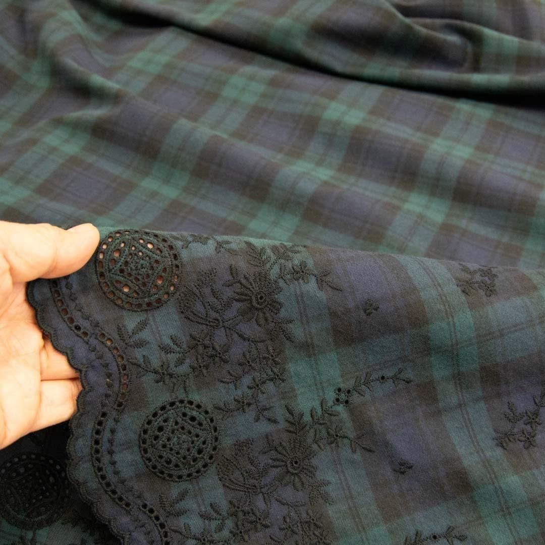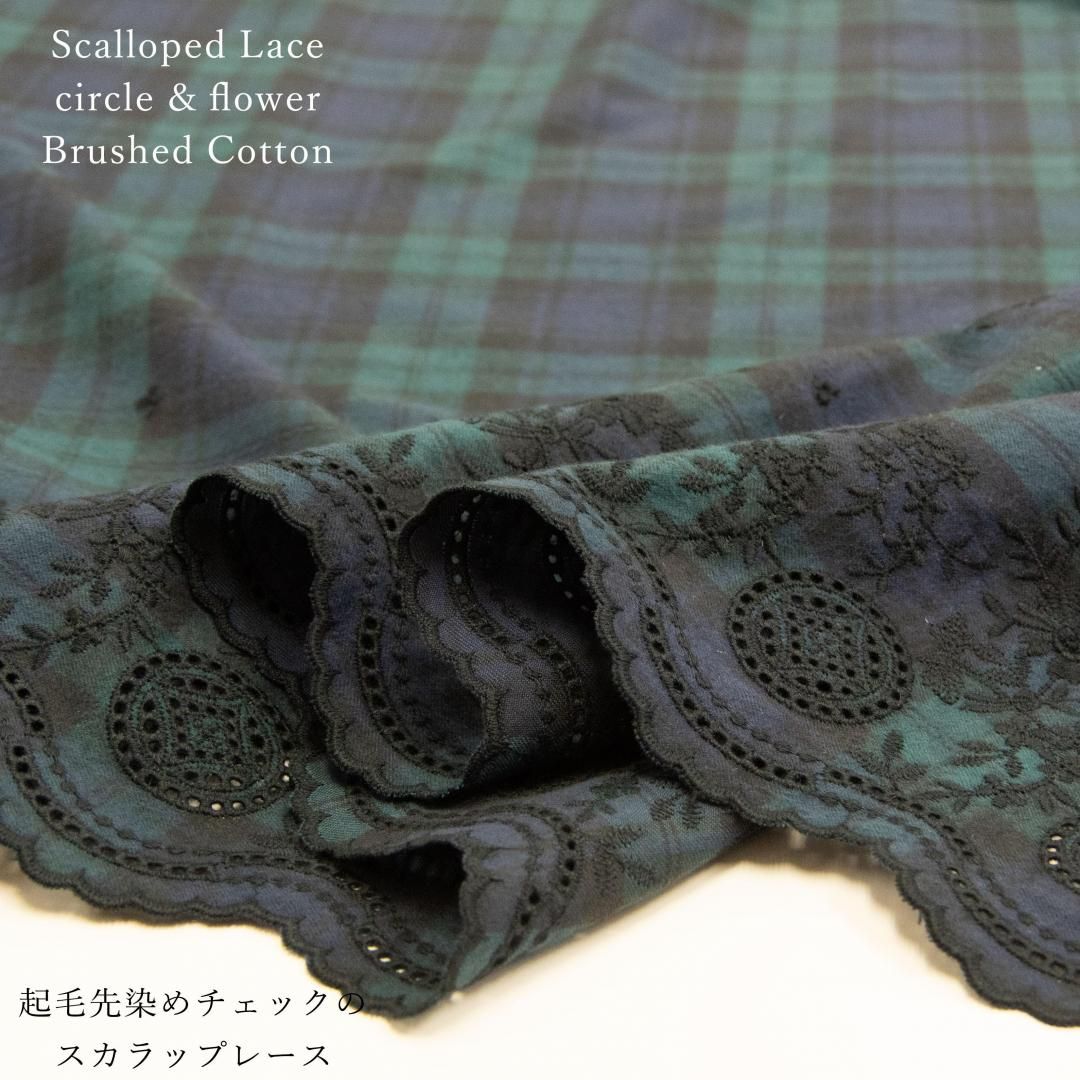 【ハギレ】【長さ 40cm】 先染め起毛チェックのサークル&フラワー