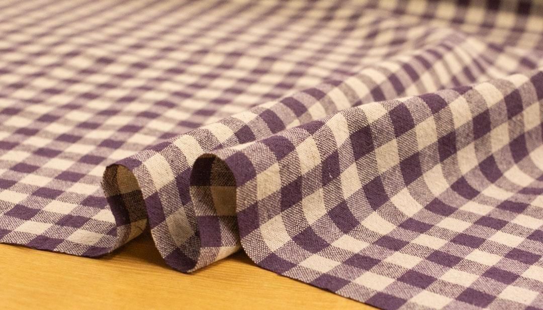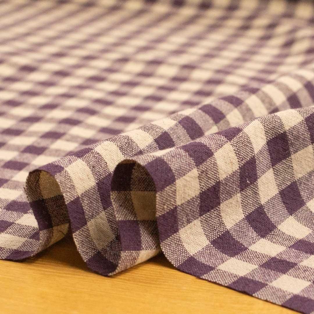 【ハギレ】【長さ  40 cm】 洗いざらしのコットンリネンギンガム チェック  アッシュパープル